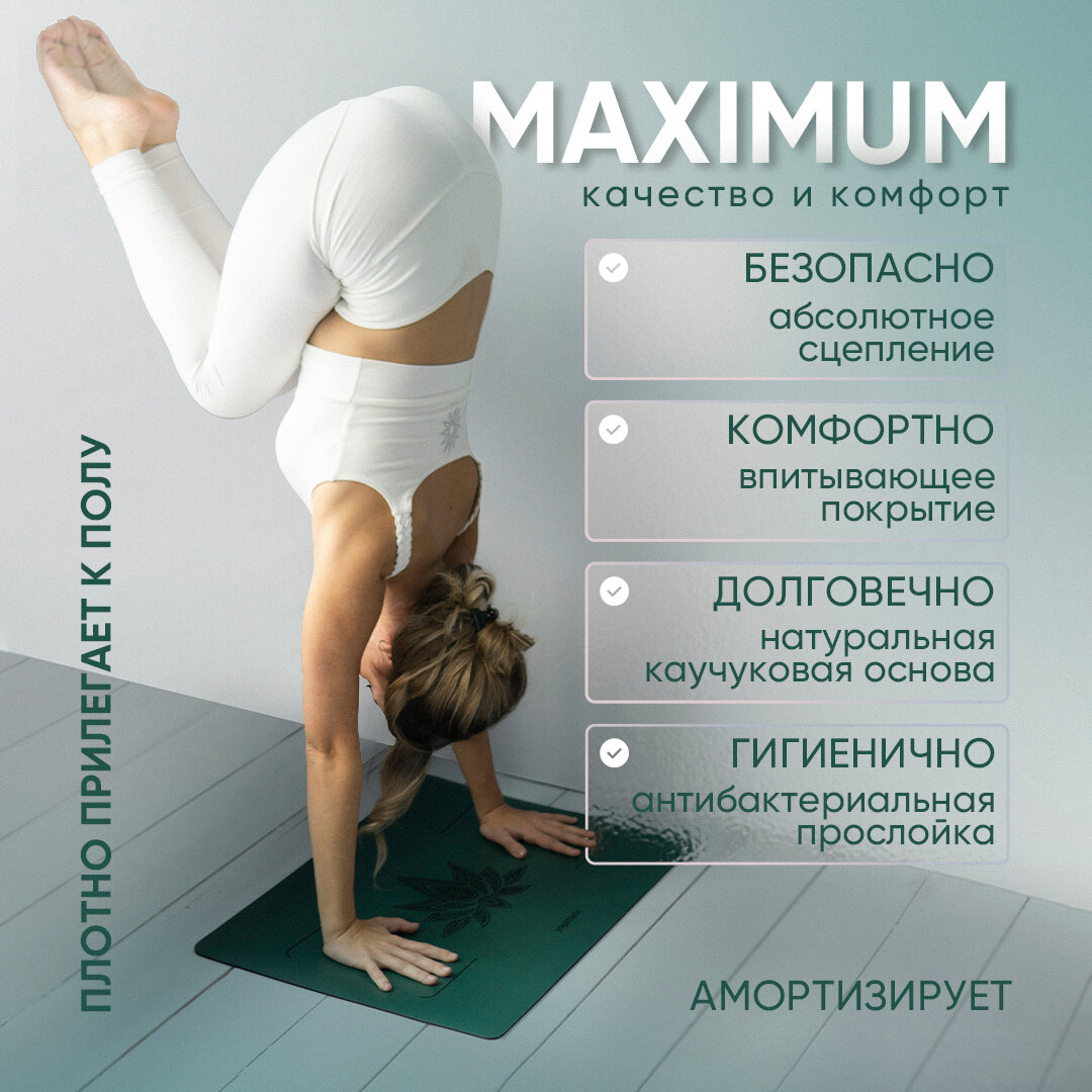 Коврик для йоги и фитнеса каучуковый нескользящий с чехлом - Арт Йогаматик Premium Light / 185x68x0.4