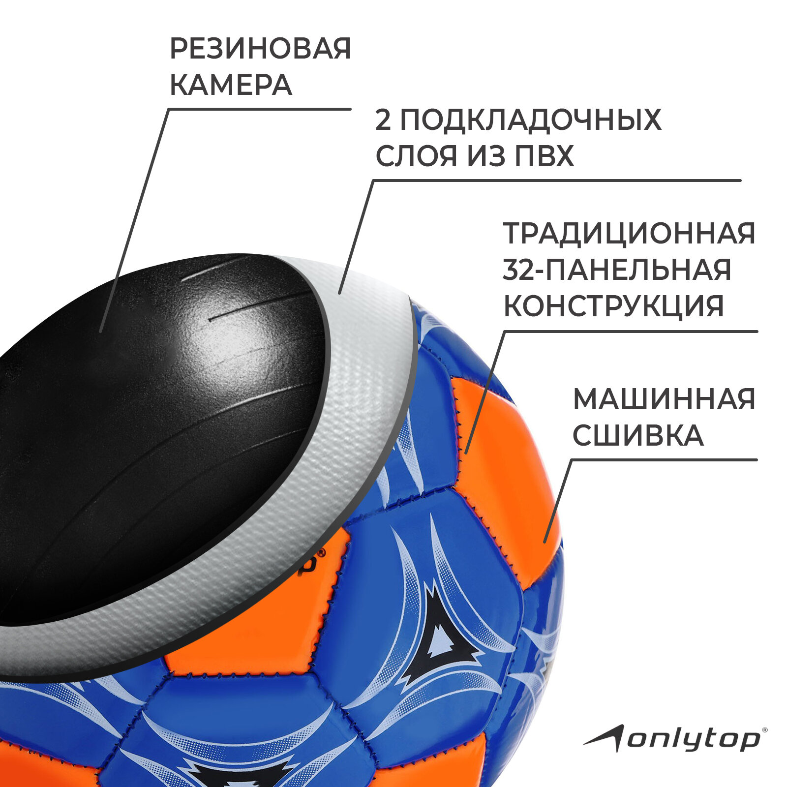 Отзывы на Мяч футбольный ONLYTOP, 2 подслоя, глянец PVC, вес 100 г, 32 панели, машинная сшивка, размер 2, цвет микс