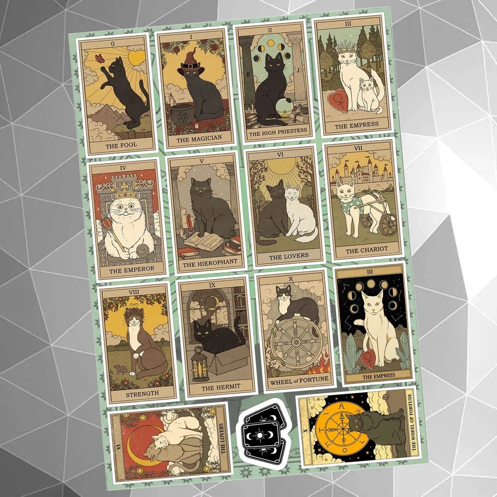 Отзывы на Стикерпак Таро старшие арканы Коты (карты 0-10) Набор виниловых наклеек