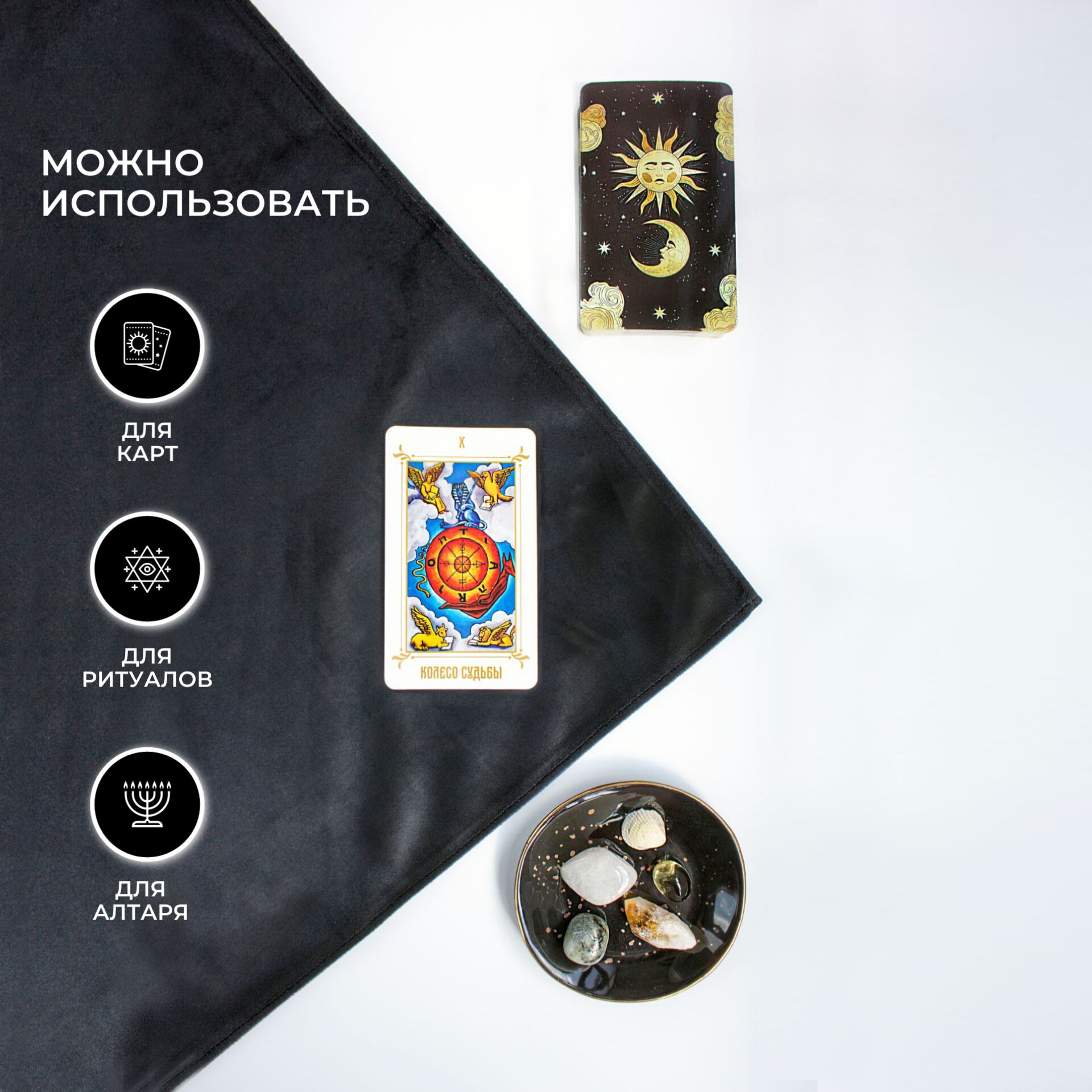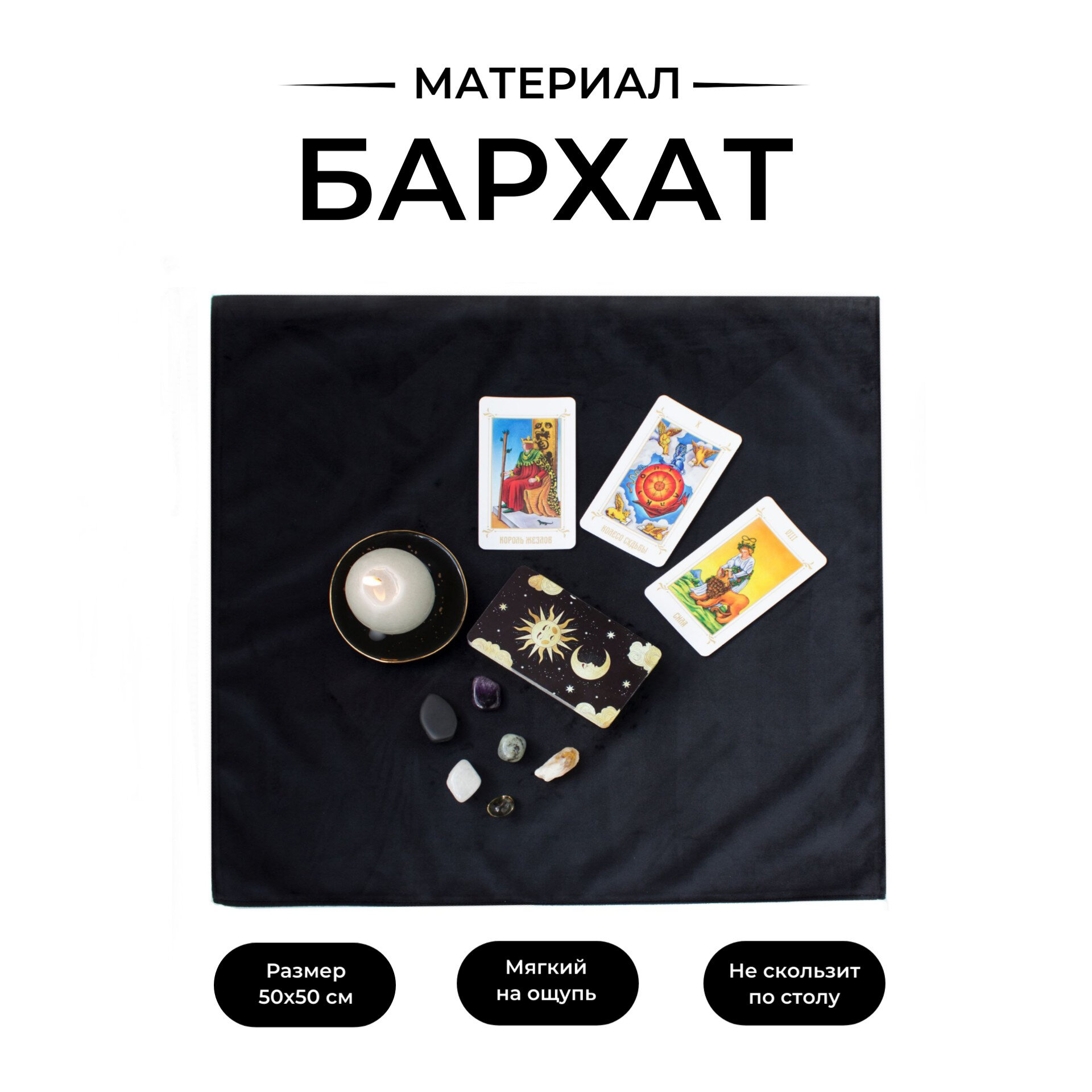 Скатерть для гадания 50 x 50 см магическая для ритуалов, для таро, черный бархат информация:
