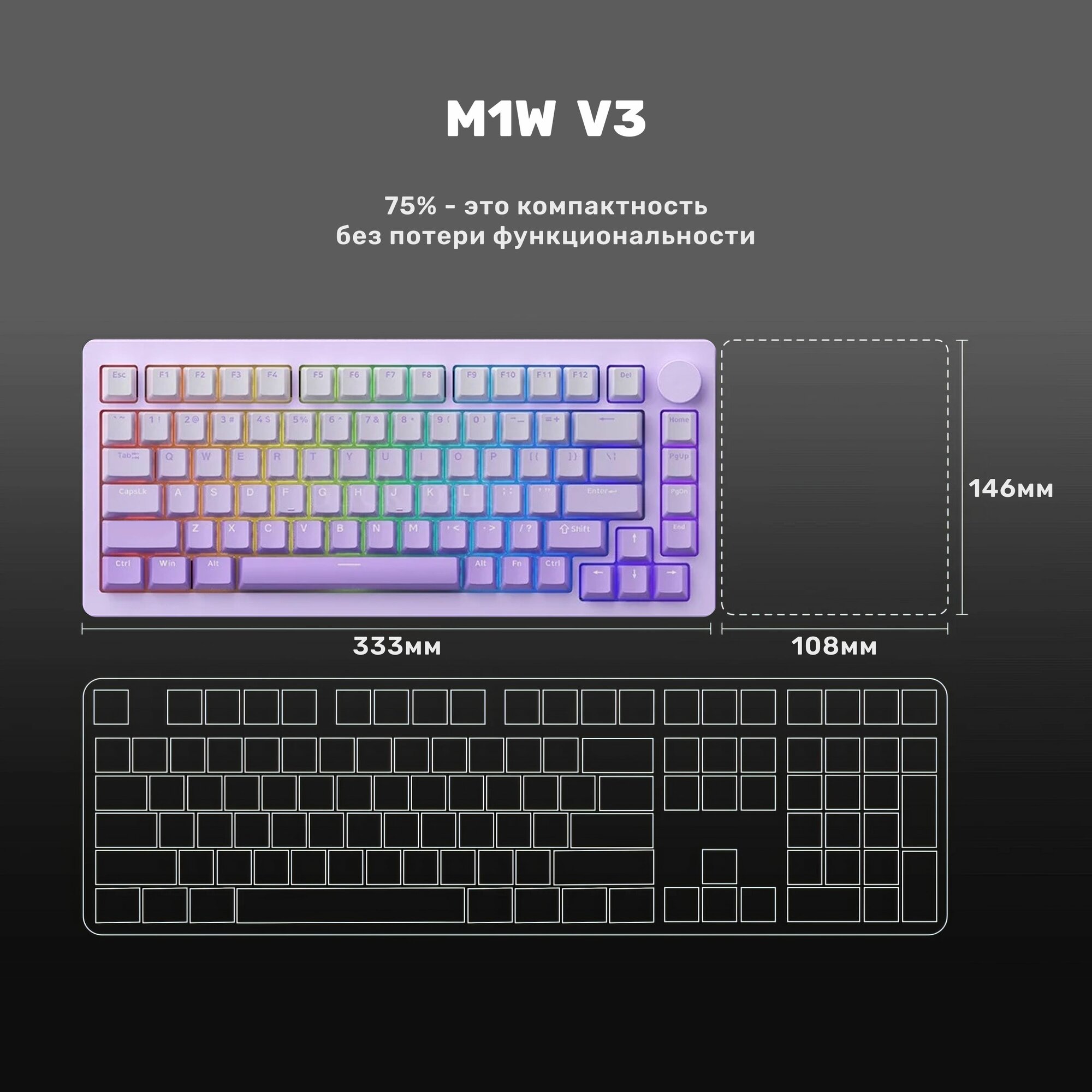 Механическая клавиатура Akko Monsgeek M1W V3 (Purple), фиолетовая, Piano V3, мультимедийная крутилка, 3MOD, шумоизоляция, OEM профиль, RGB подсветка информация: