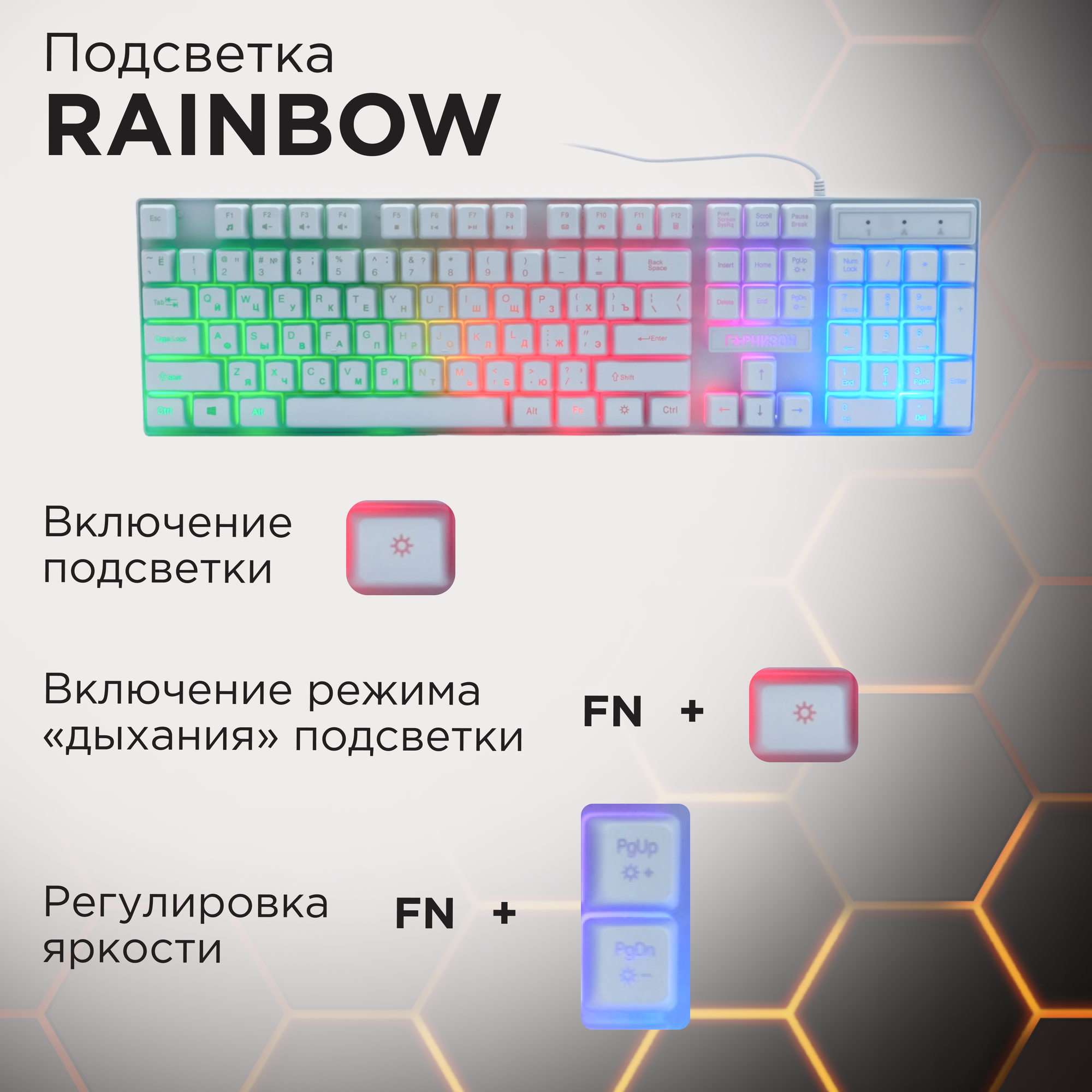 Проводная игровая клавиатура Гарнизон GK-200GL-W, Rainbow, 19 клавиш anti-ghosting, белая информация: