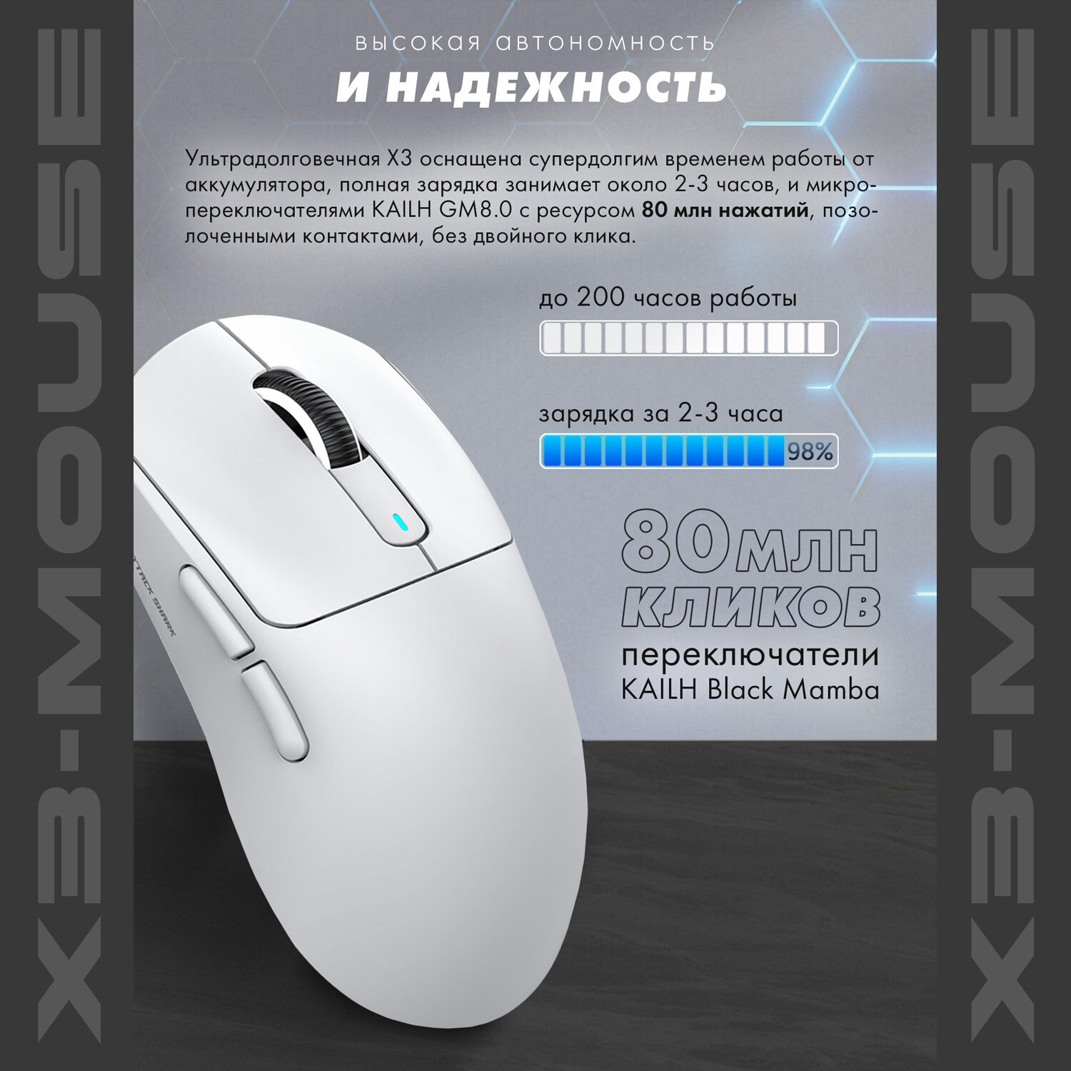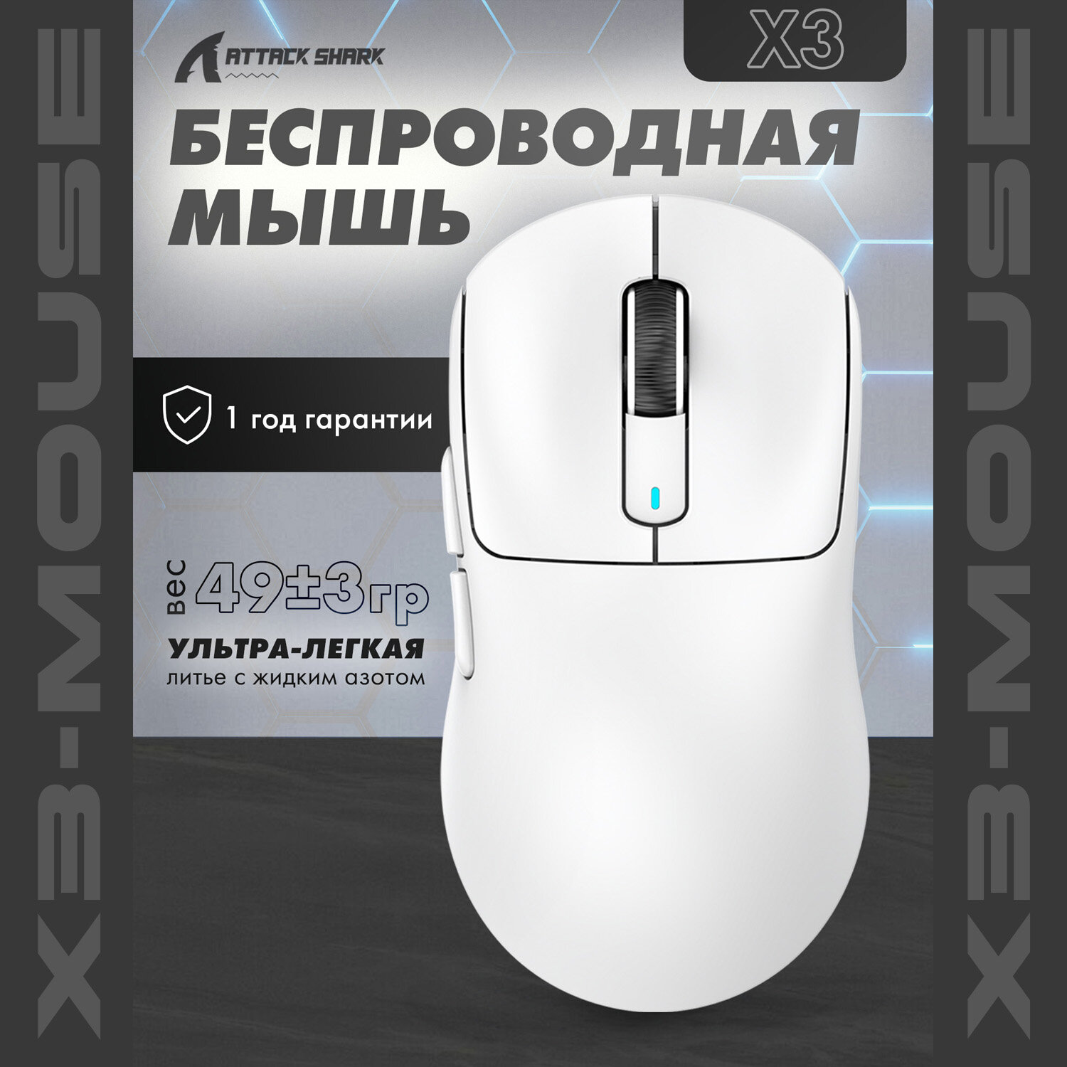 10 цен на Мышь Attack Shark X3 белая, PAW3395, беспроводная