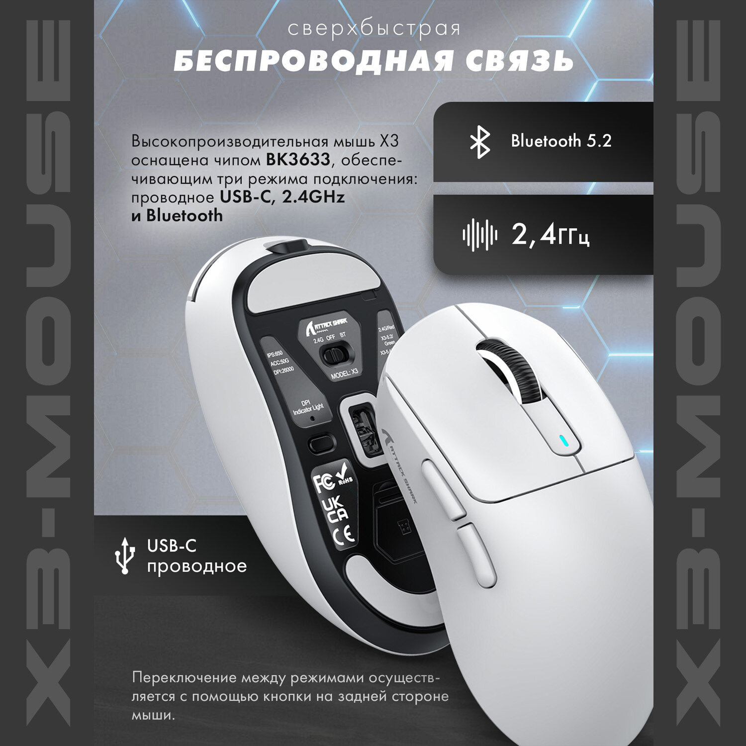 Мышь Attack Shark X3 белая, PAW3395, беспроводная информация: