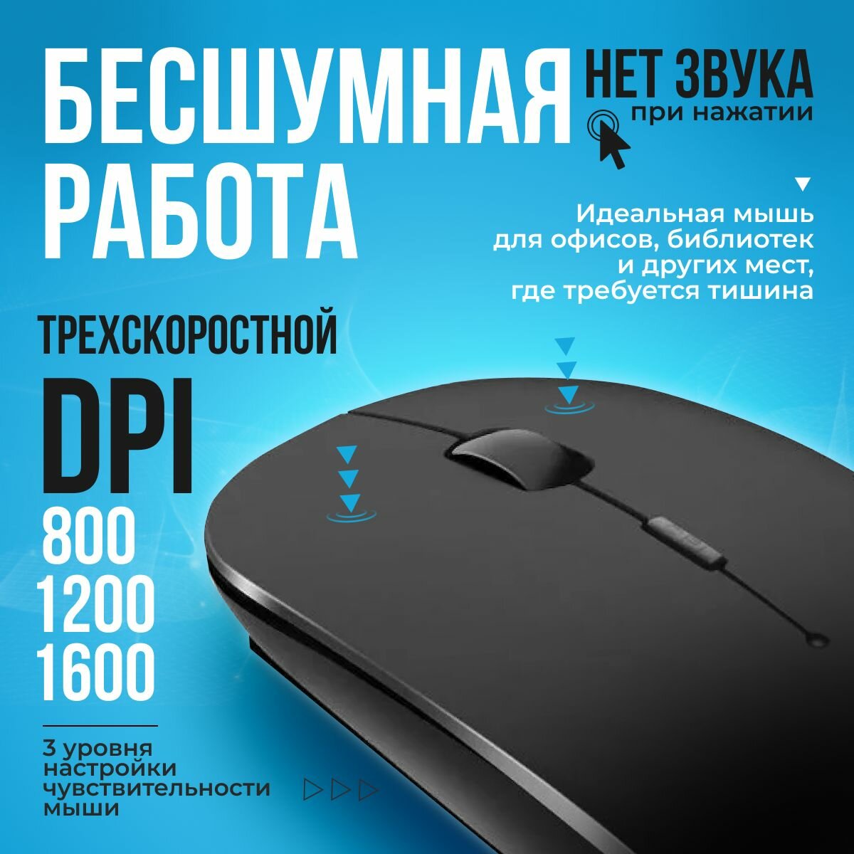 Отзывы на Мышка компьютерная беспроводная 800/1200/1600 DPI 500mAh / игровая мышь Bluetooth бесшумная с зарядкой / цвет черный