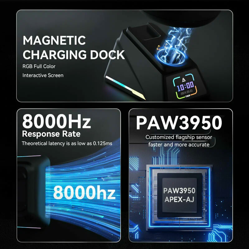 10 цен на Беспроводная игровая мышь Ajazz APEX топовый сенсор PAW3950 8KHz док станция . Черная