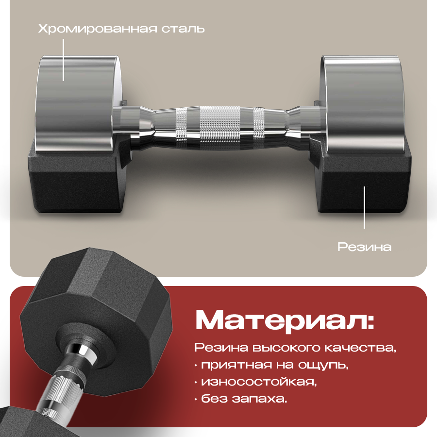 Гантели 8 кг 2 шт обрезиненные PROIRON, для фитнеса и спорта, черный и хром 6 450 ₽