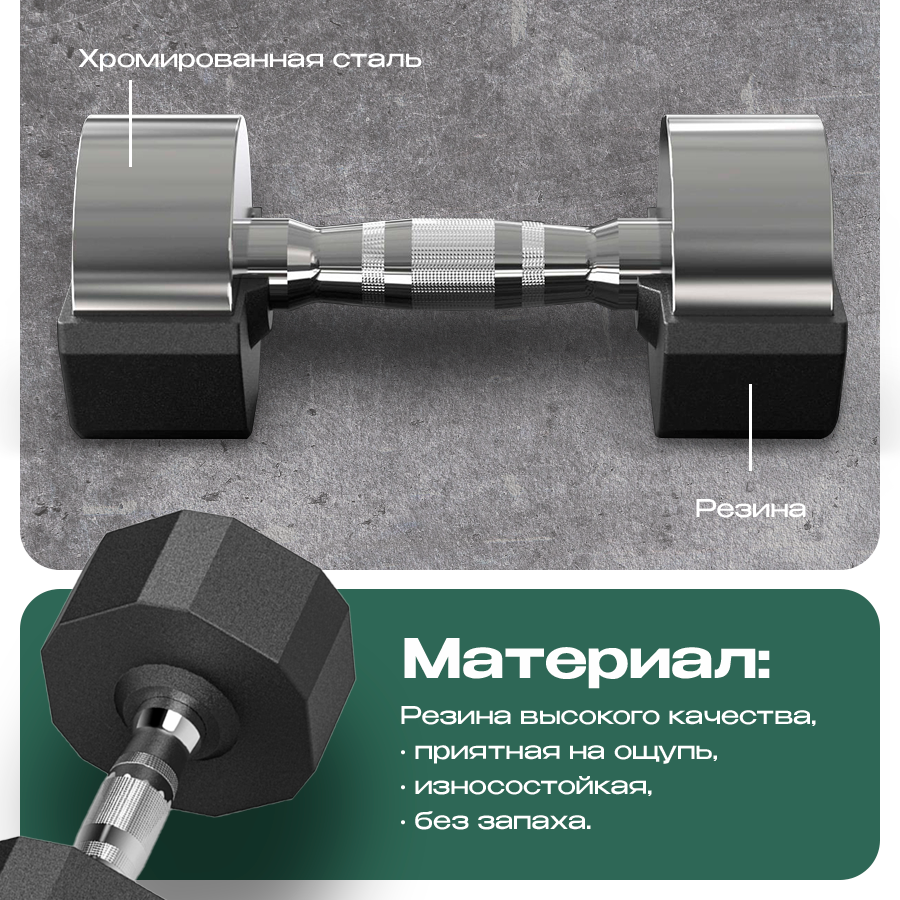Гантели 8 кг 2 шт обрезиненные PROIRON, для фитнеса и спорта, черный и хром информация: