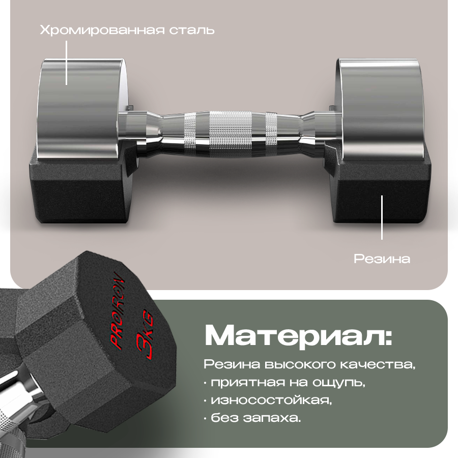 Гантели 3 кг 2 шт обрезиненные PROIRON, для фитнеса и спорта, черный и хром информация: