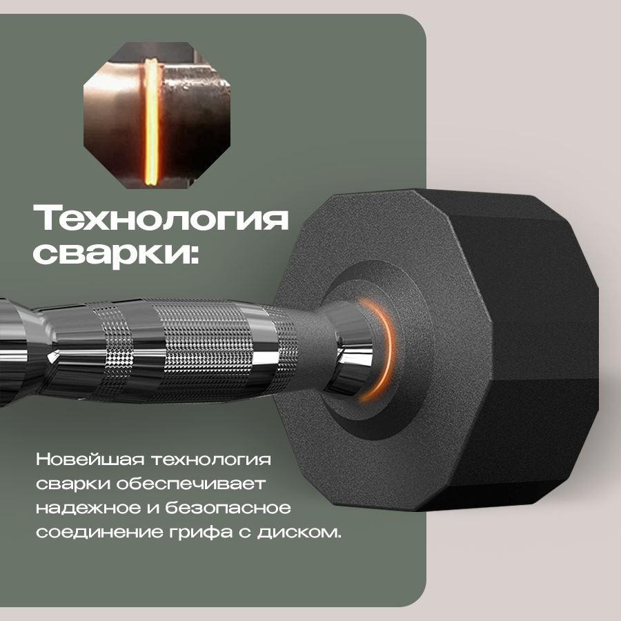 Гантель 16 кг 1 шт обрезиненная PROIRON, для фитнеса и спорта, черный и хром 5 505 ₽