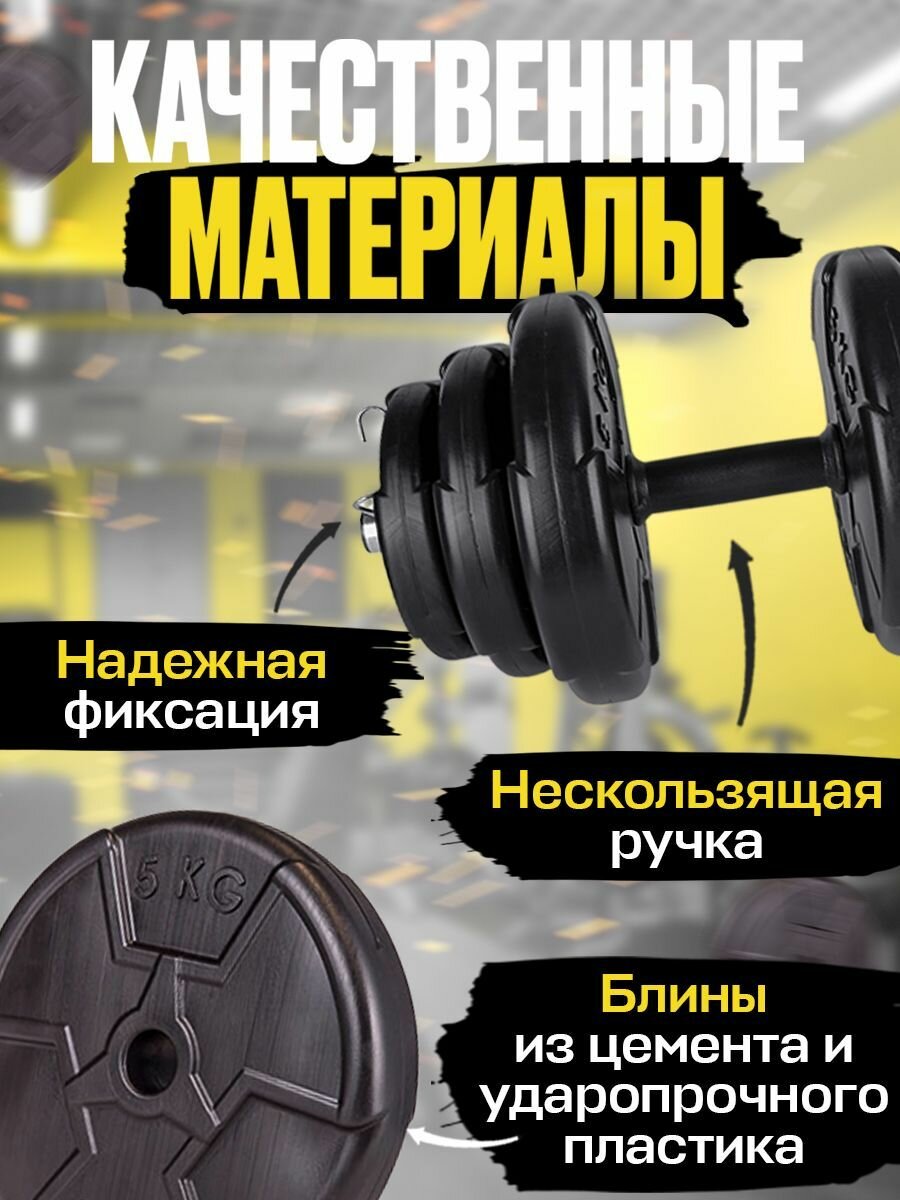 Гантели разборные 30 кг ECGSPOR, 2шт по 15 кг, с грифом, черные, для спорта фитнеса информация: