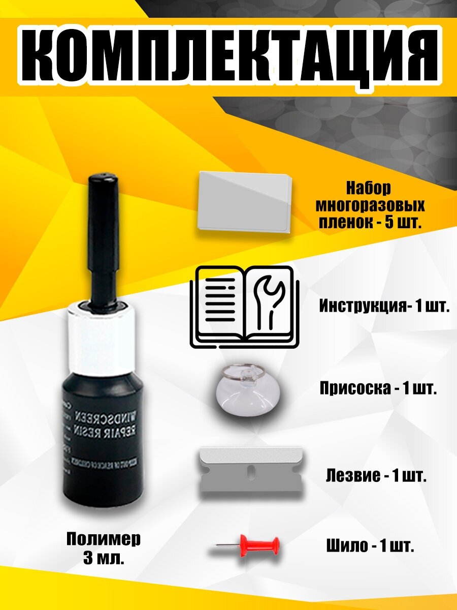 Набор ремкомплект для ремонта лобового стекла Tehno Bochka информация: