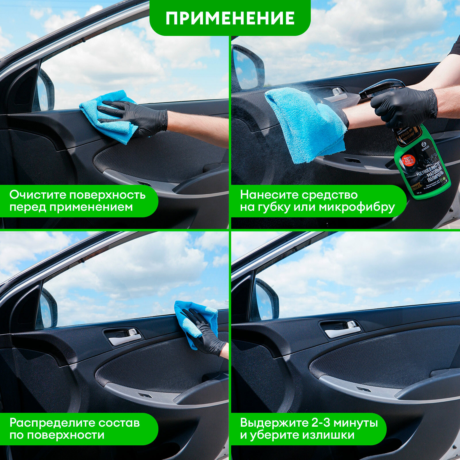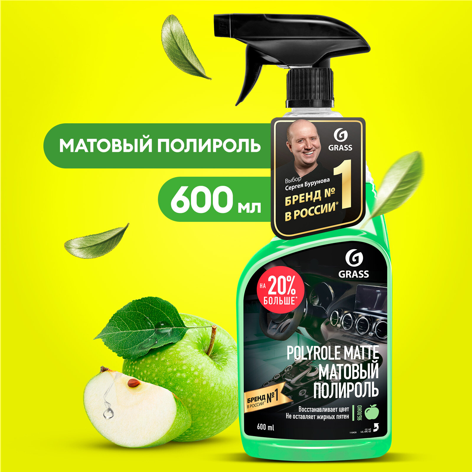 Отзывы на Полироль для пластика автомобиля Grass Polyrole Matte, 600мл. матовая с ароматом яблока