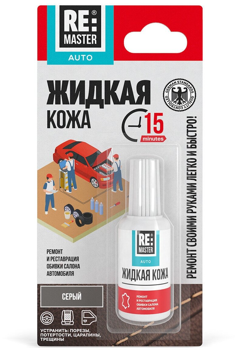 10 цен на Жидкая кожа Авто для ремонта салона автомобиля ReMaster Auto 20 мл Серый