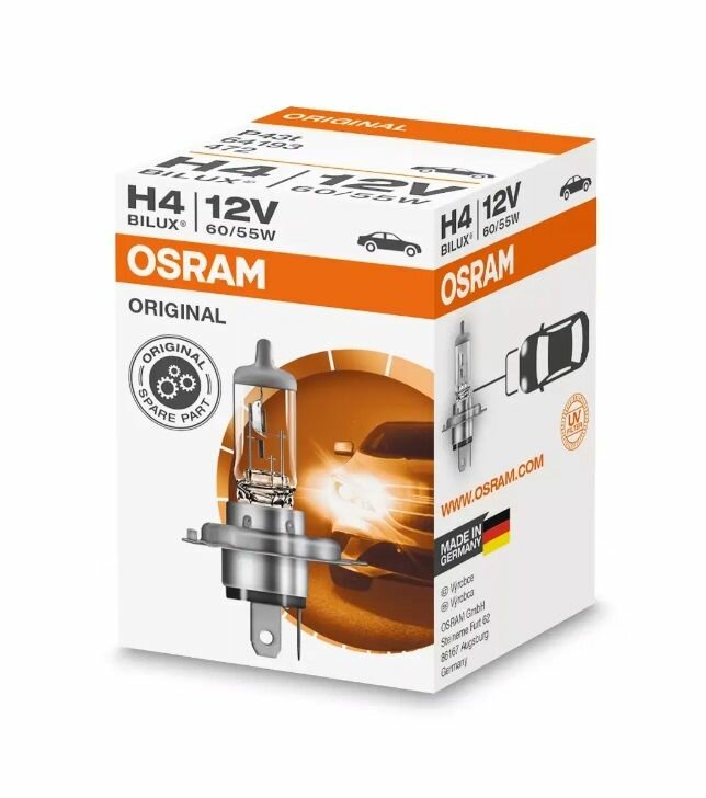 Отзывы на Набор 2шт: Автолампа галогенная OSRAM ORIGINAL LINE H4 12V 60/55W P43t, 64193