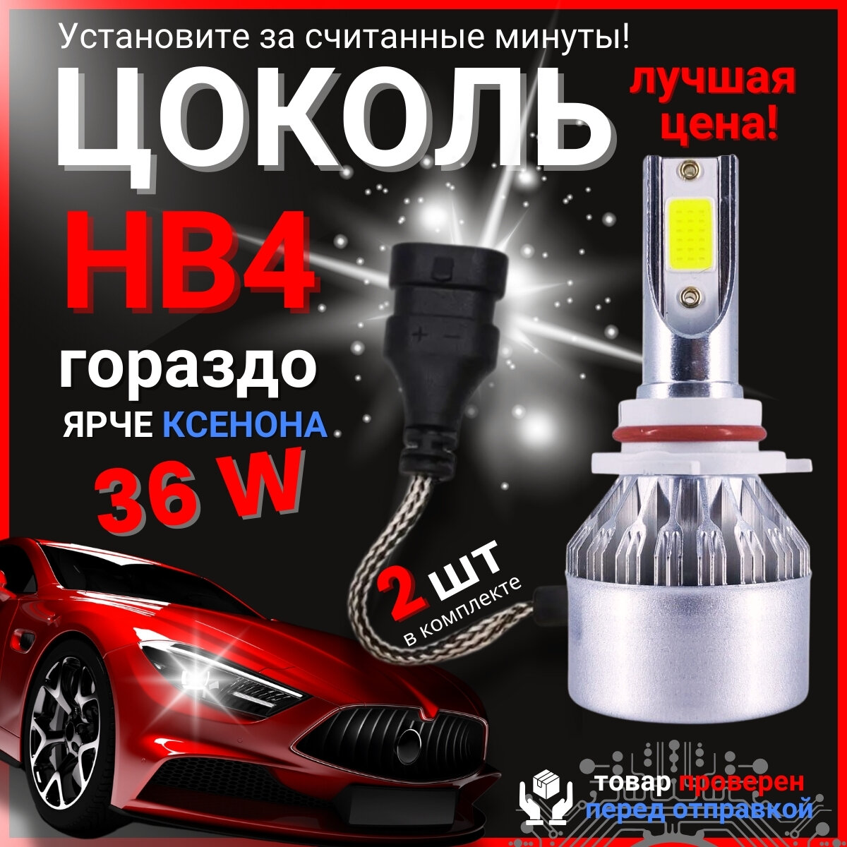 Отзывы на Светодиодные автомобильные лампы LED С6 HB4, 2 шт, Напряжение 12V, Мощность 36W