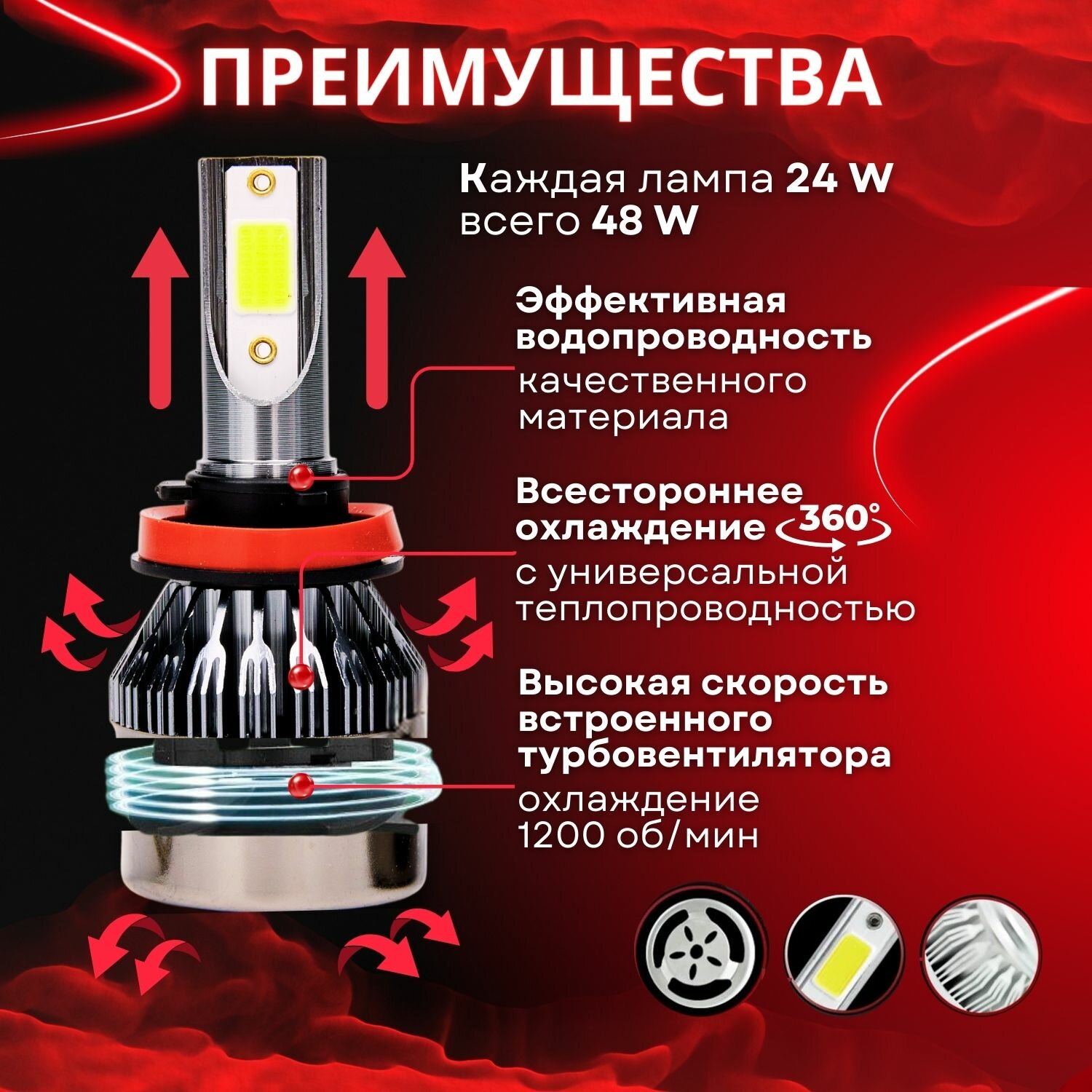 Светодиодные автомобильные лампы Н11/H8/H9, C6 Original Black Edition, Белый свет 6500K, Комплект 2 шт 829 ₽