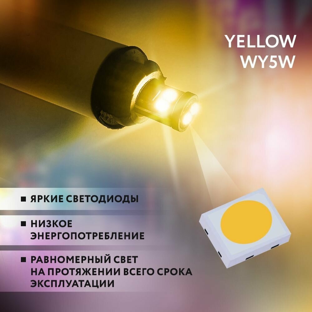 Лампа светодиодная автомобильная KATANA "оранжевая" WY5W T10 LED 6500K (Комплект 2 шт.) габаритная , подсветки номерного знака , освещения салона информация: