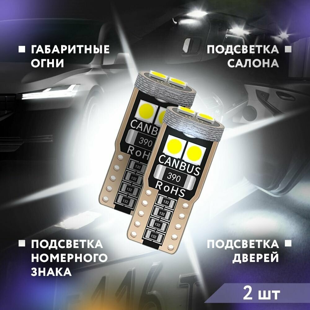 10 цен на Лампа светодиодная автомобильная KATANA "БЕЛАЯ" W5W T10 LED 6500K (Комплект 2 шт.) габаритная , подсветки номерного знака , освещения салона
