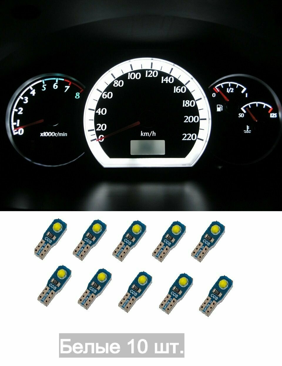 Лампы светодиодные T5 (W1,2W) подсветка панели приборов 12V LED (10шт) информация: