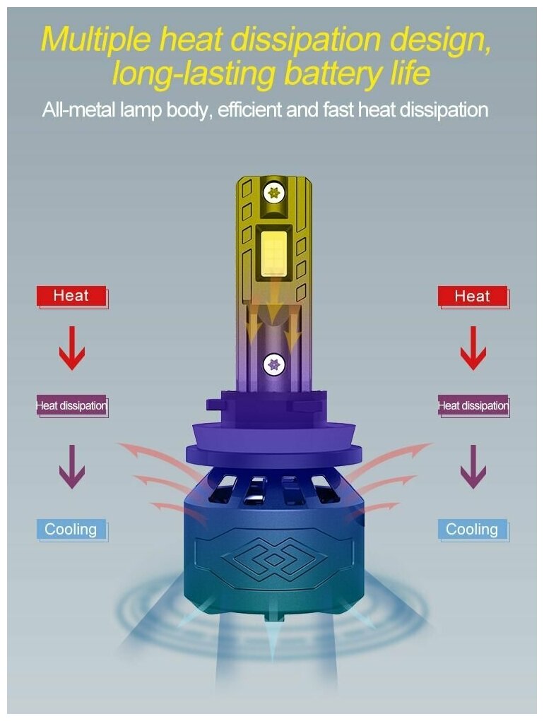 Светодиодные лампы Vizant J7 цоколь H15 с чипом CSP 3570 4500lm 5000