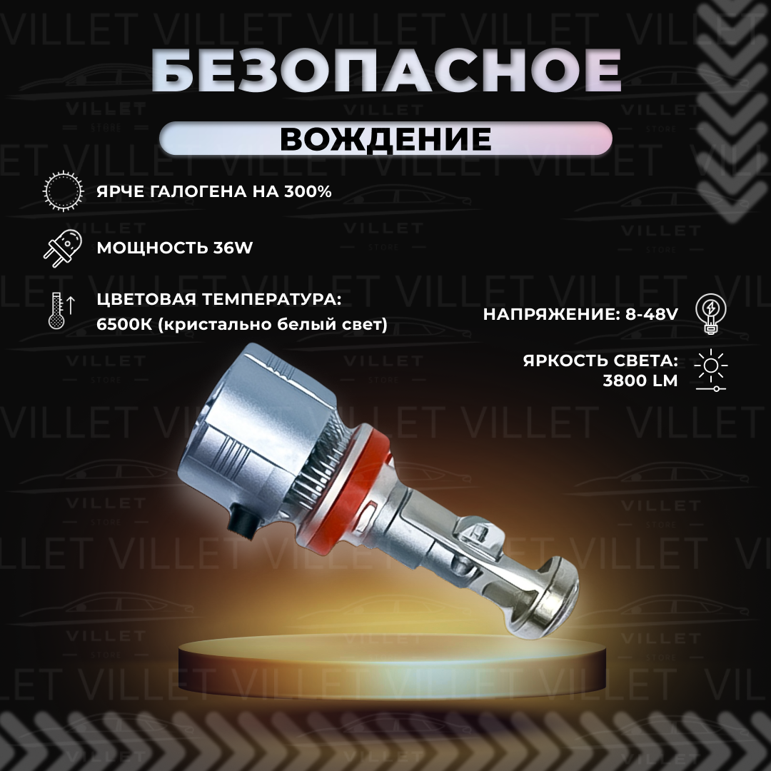 Линзованные лампы головного света H11, автолампы светодиодные, Led лампы с цоколем Н11 информация: