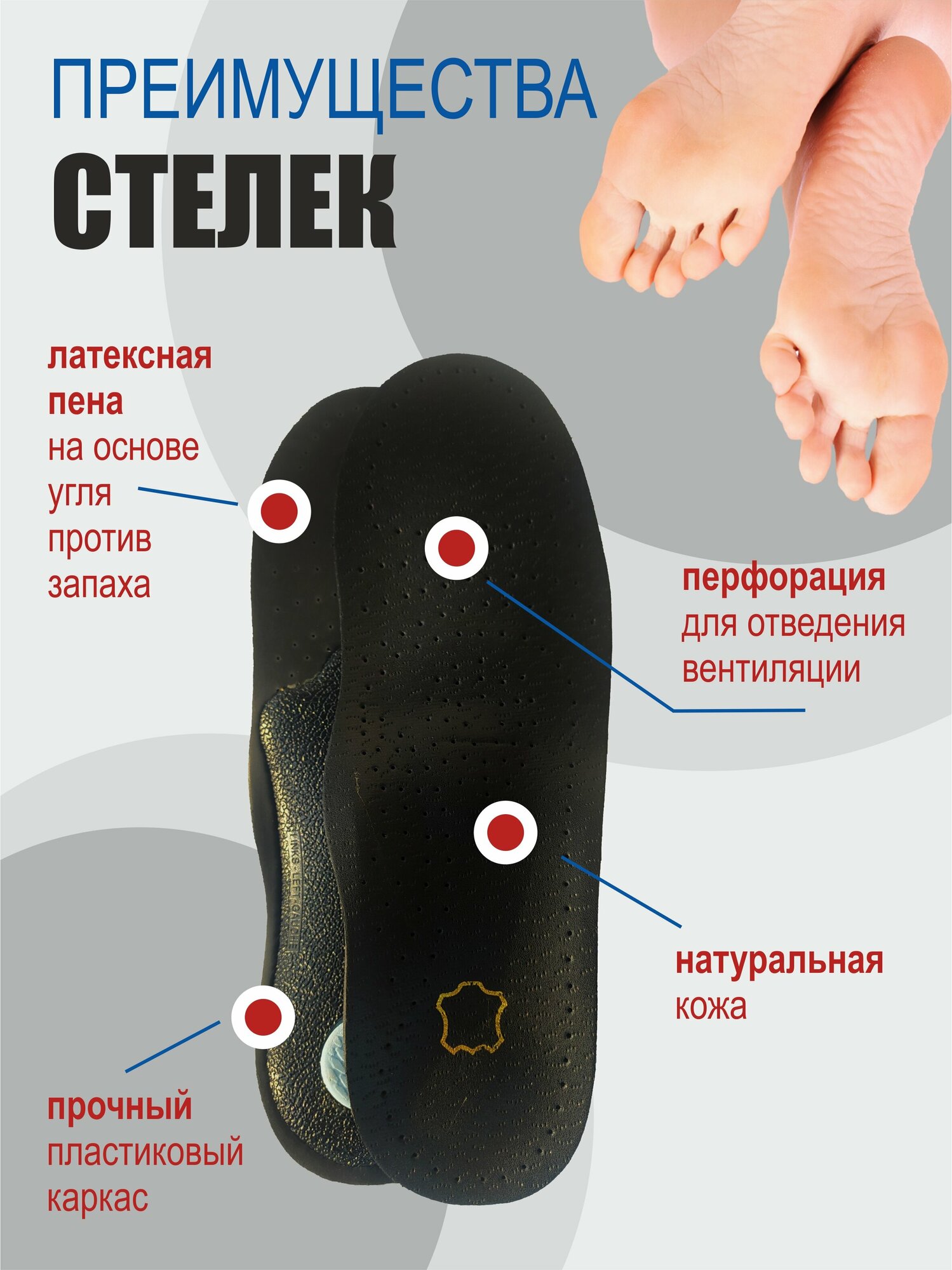 10 цен на Стельки ортопедические, каркасные, кожаные, при плоскостопии, мужские Черные, р. 43-44