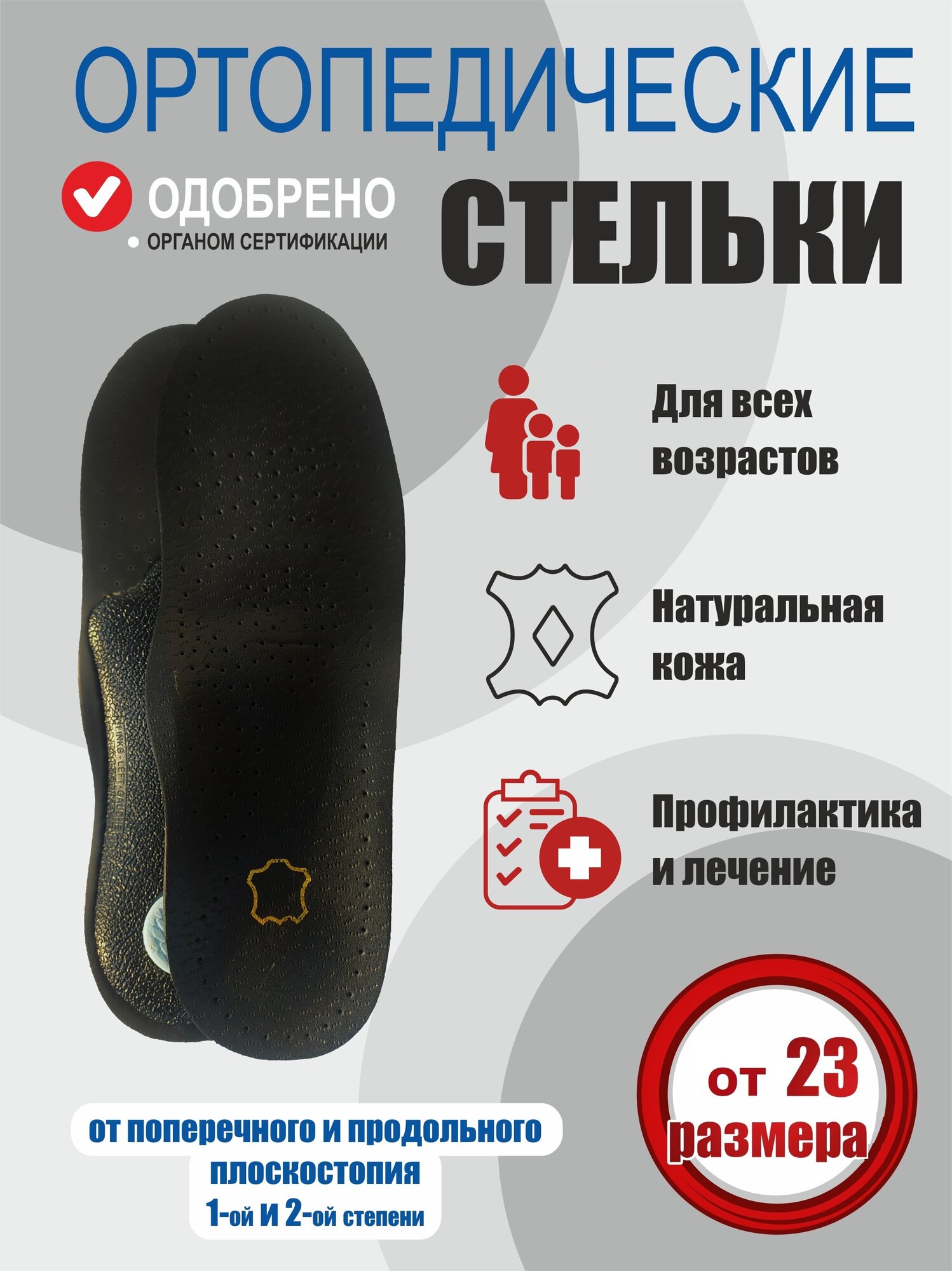 10 цен на Стельки ортопедические, каркасные, детские, кожаные, при плоскостопии Черные, р. 23-26