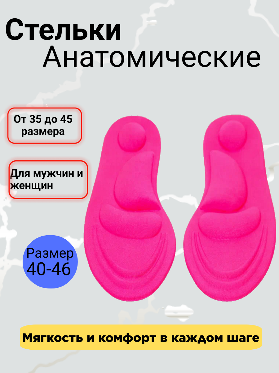 Отзывы на Стельки для обуви, анатомические, с ортопедическим эффектом памяти, мягкие, при плоскостопии, р-р 40-46, розовые