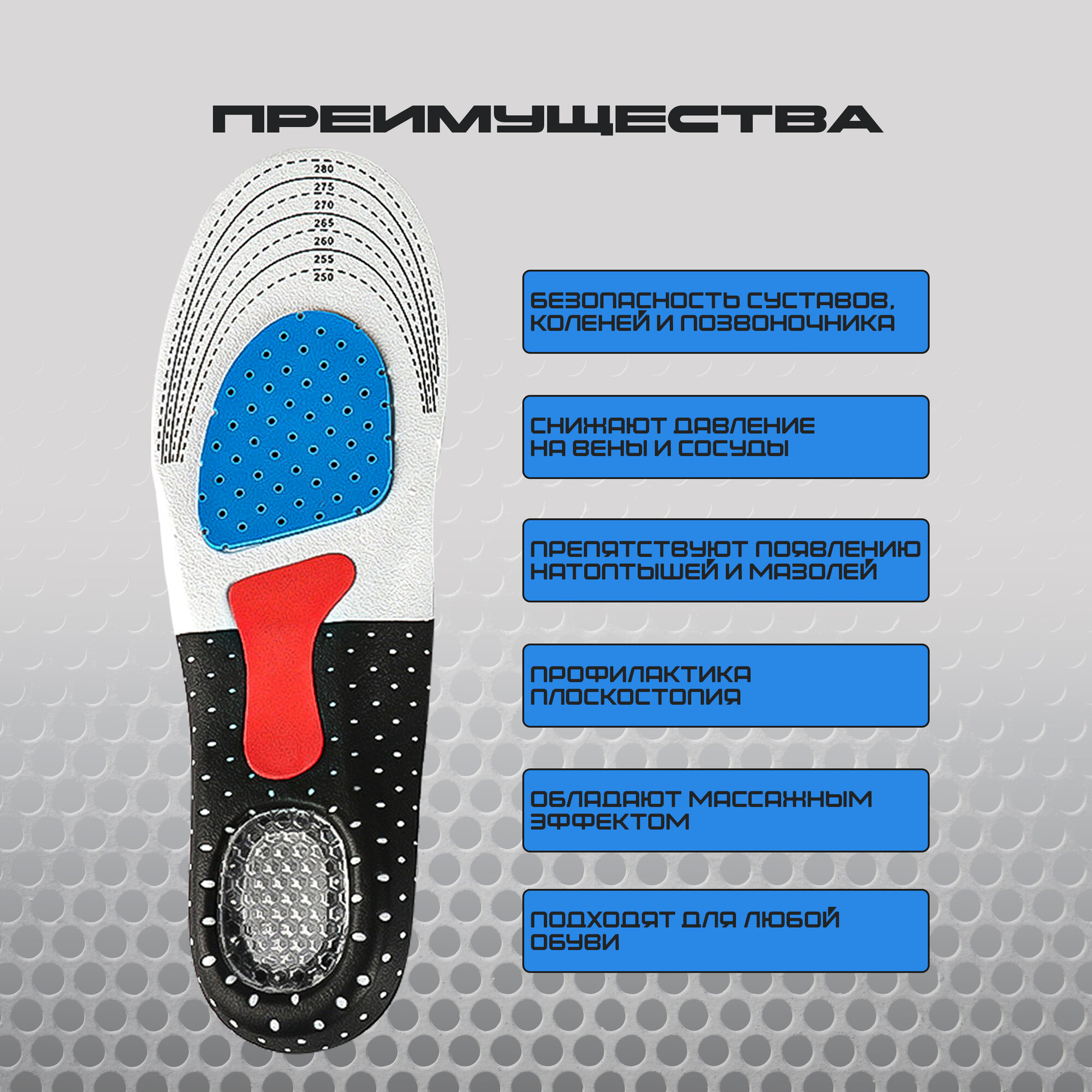 Стельки для обуви спортивные ортопедические при плоскостопии Размер 40-46 с амортизирующей гелевой пяткой / Для мужчин и женщин информация: