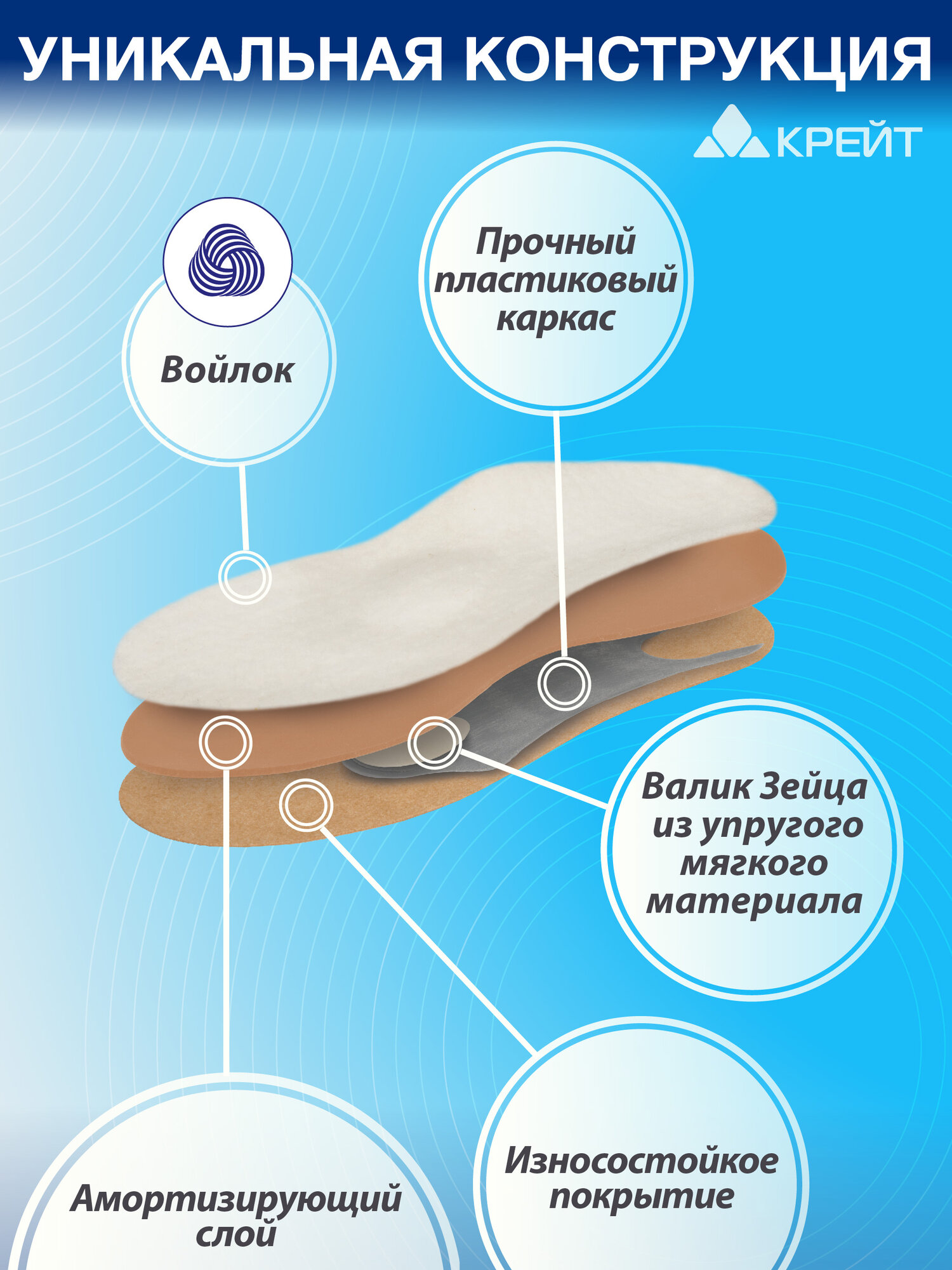 Стельки ортопедические кожаные, каркасные при пяточной шпоре и плоскостопии, Крейт, №35 1 660 ₽