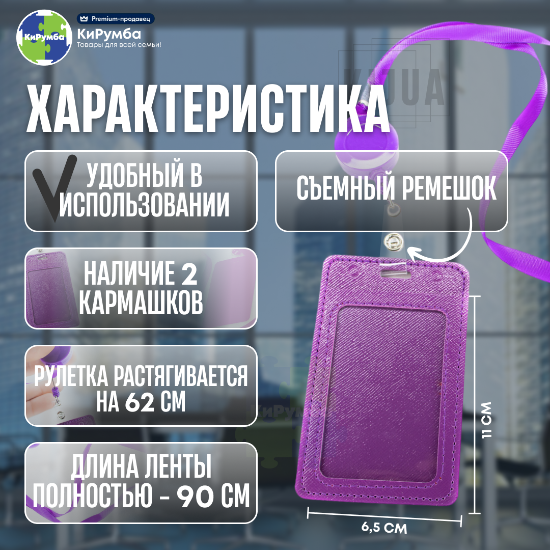 Отзывы на Бейдж для пропуска, картхолдер, с рулеткой и лентой, фиолетовый, 65x110 мм
