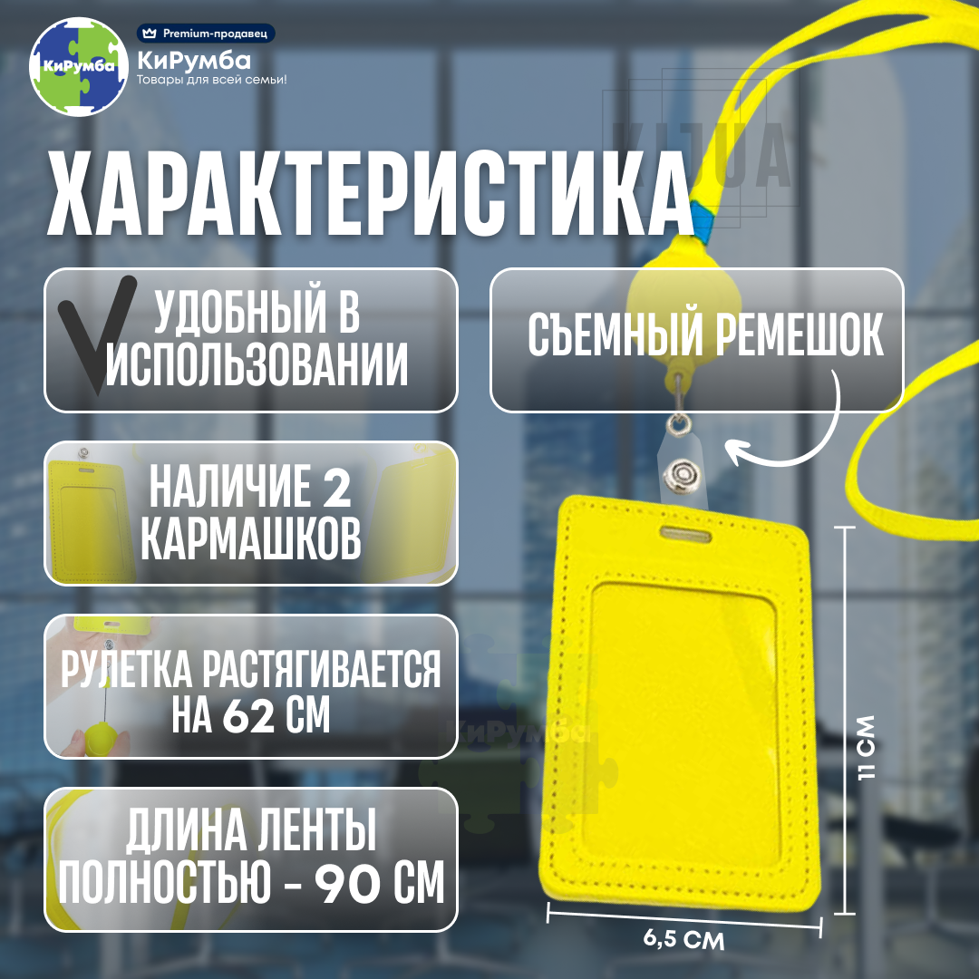Отзывы на Бейдж для пропуска, картхолдер, с рулеткой и лентой, желтый, 65x110 мм