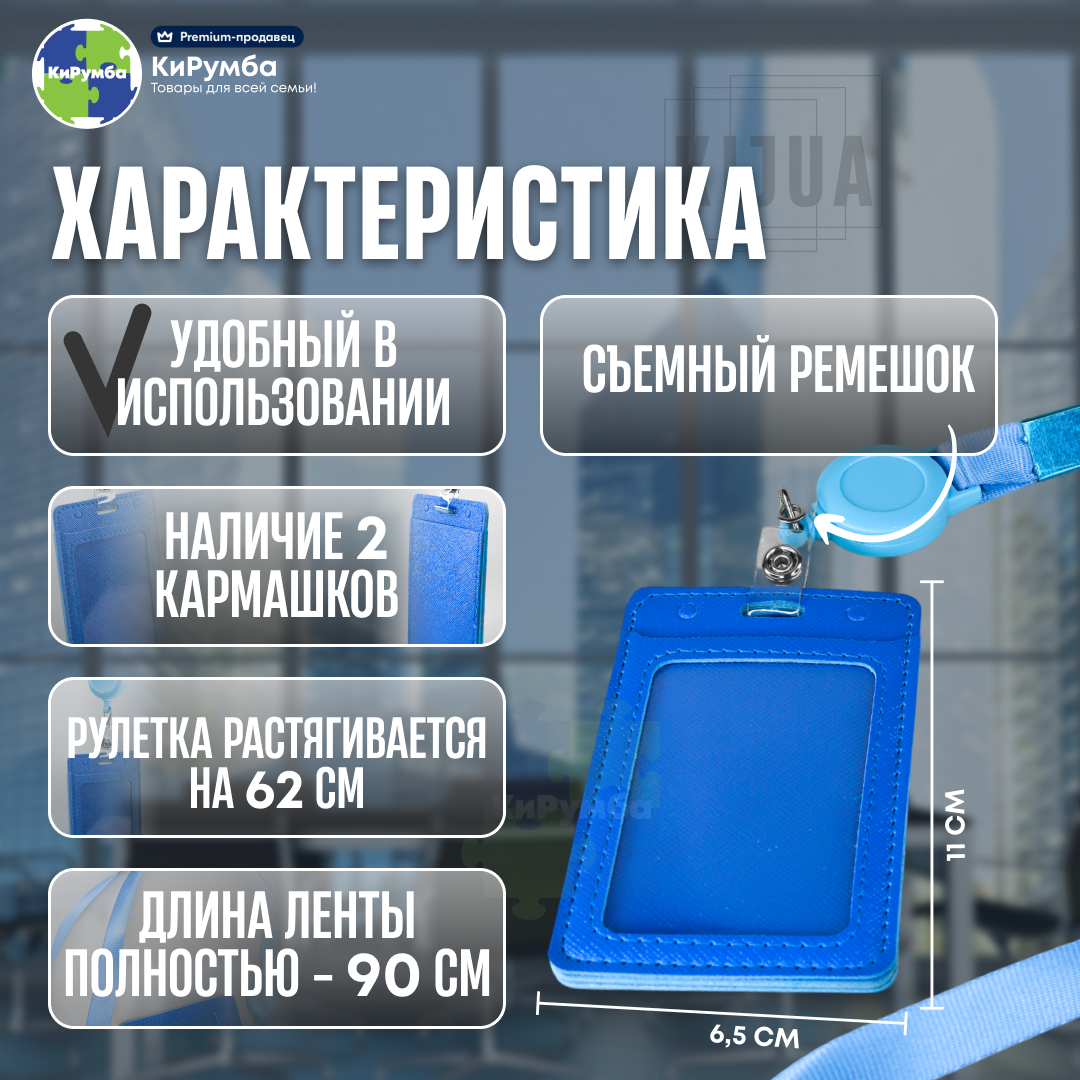Отзывы на Бейдж для пропуска, картхолдер, с рулеткой и лентой, голубой, 65x110 мм