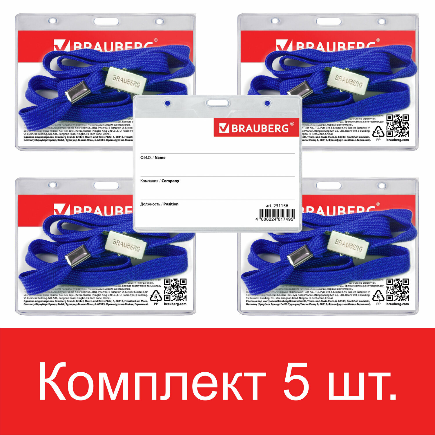 Отзывы на Бейдж для пропуска на ленте пластиковый прозрачный горизонтальный 60х90 мм, бейджик на синем шнурке 45 см в школу, набор 5 штук, Brauberg, 880103