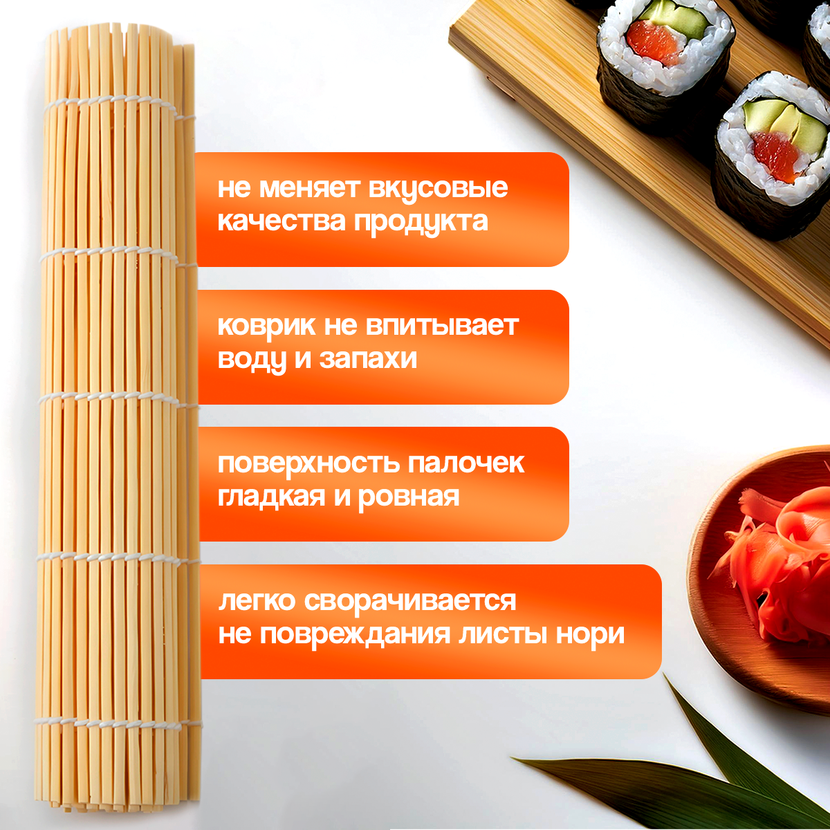 Коврик для скручивания / Циновка для роллов / Коврик для роллов 23 х 23 см, натуральная информация:
