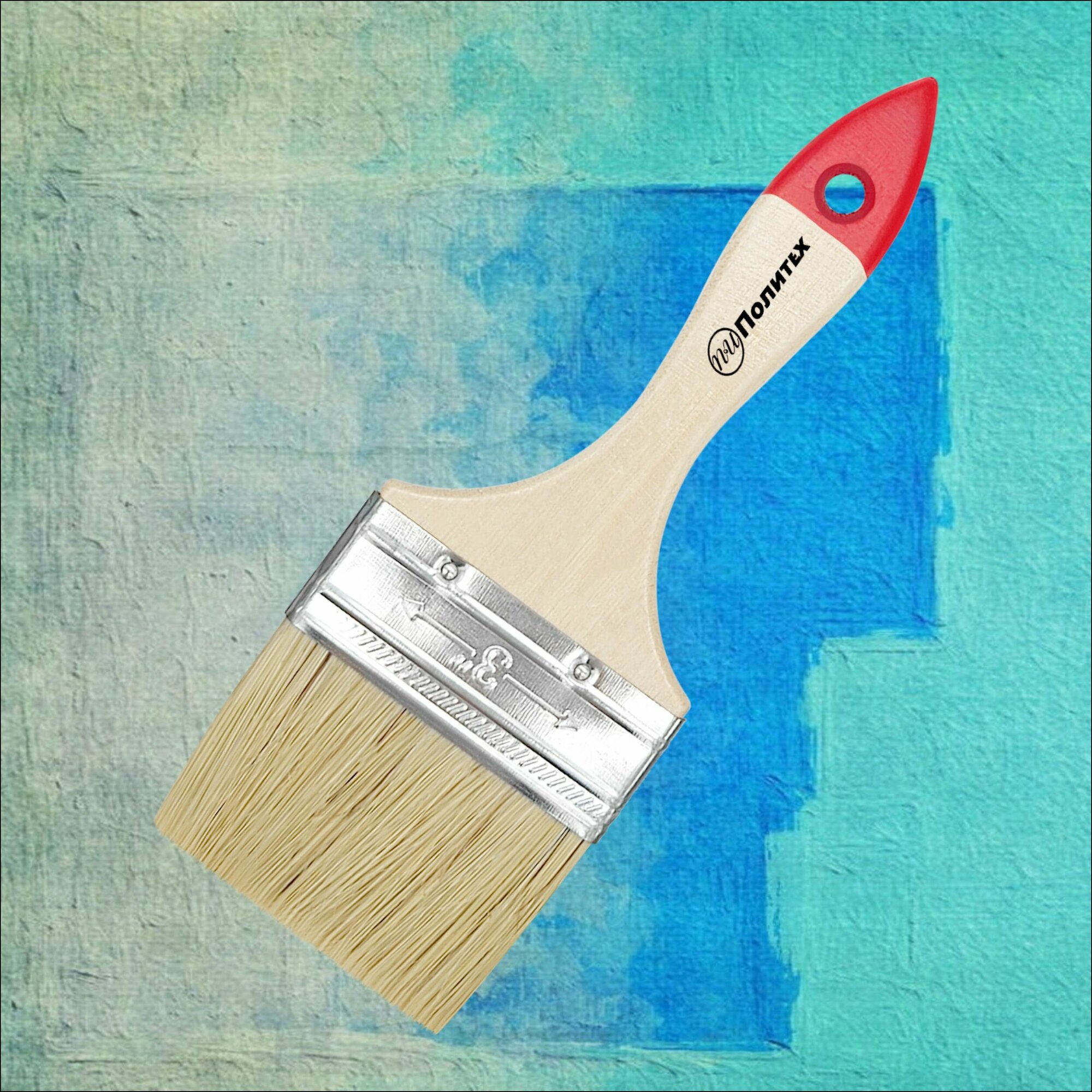 Кисть малярная флейцевая плоская 4" (101 мм), натуральная щетина, пластмассовая рукоятка, 1 штука/ кисточка для краски, лака, ЛКМ