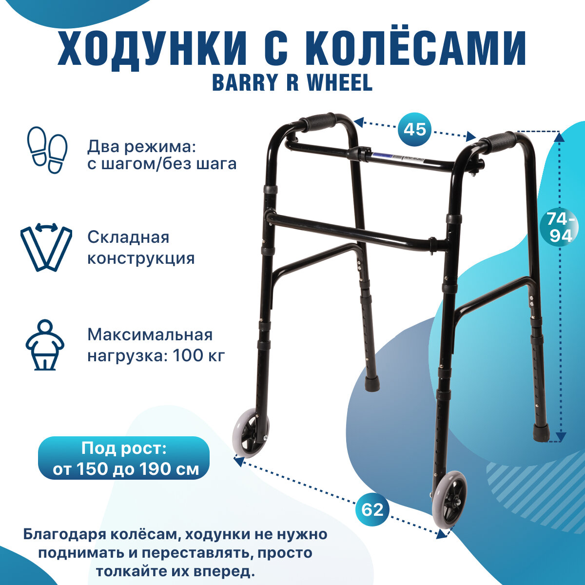 Ходунки Barry R Wheel шагающие, черные, 2,7 кг 5 490 ₽