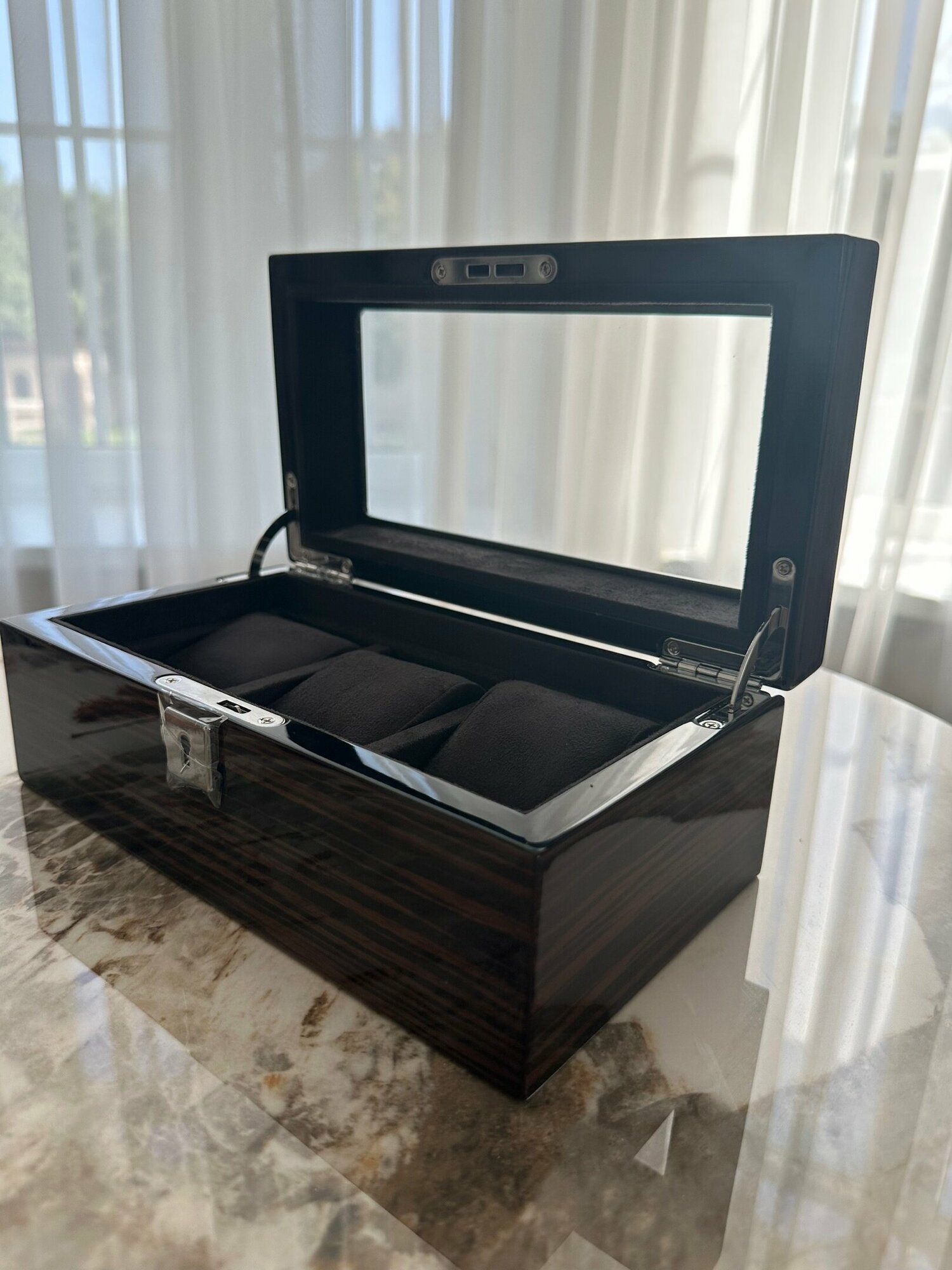 Шкатулка деревянная для 3-х часов с бархатной отделкой информация: