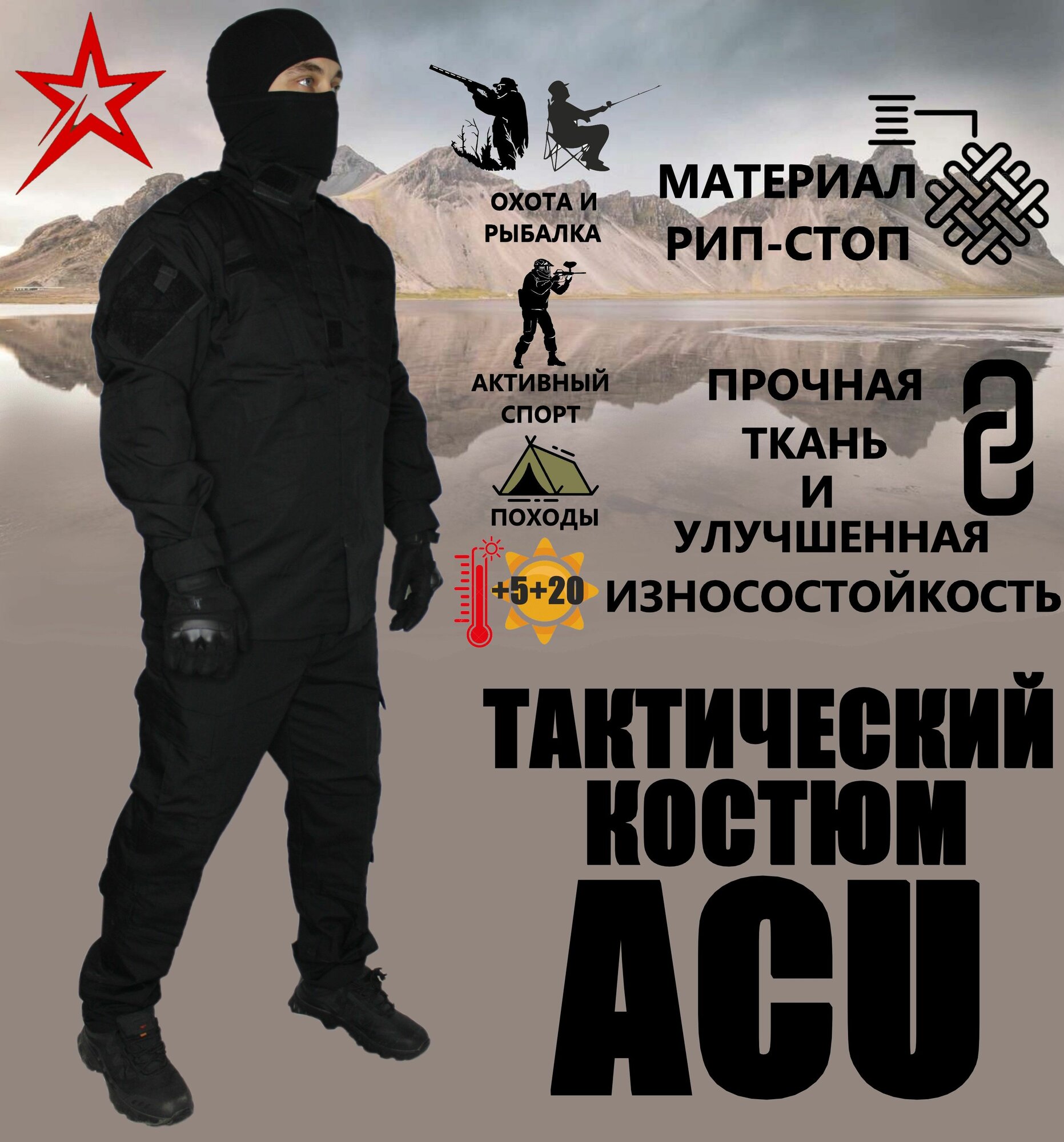 Костюм мужской тактический ACU черный размер М 4 800 ₽