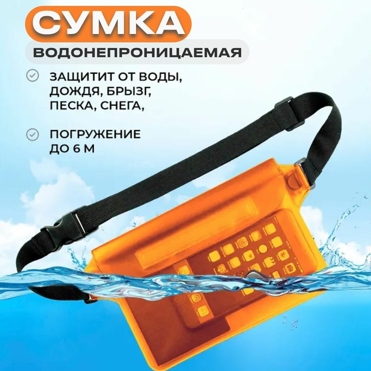 Водонепроницаемая сумка на пояс. Чехол для телефона водонепроницаемый. Герметичная поясная сумка. Водонепроницаемая поясная сумка. информация: