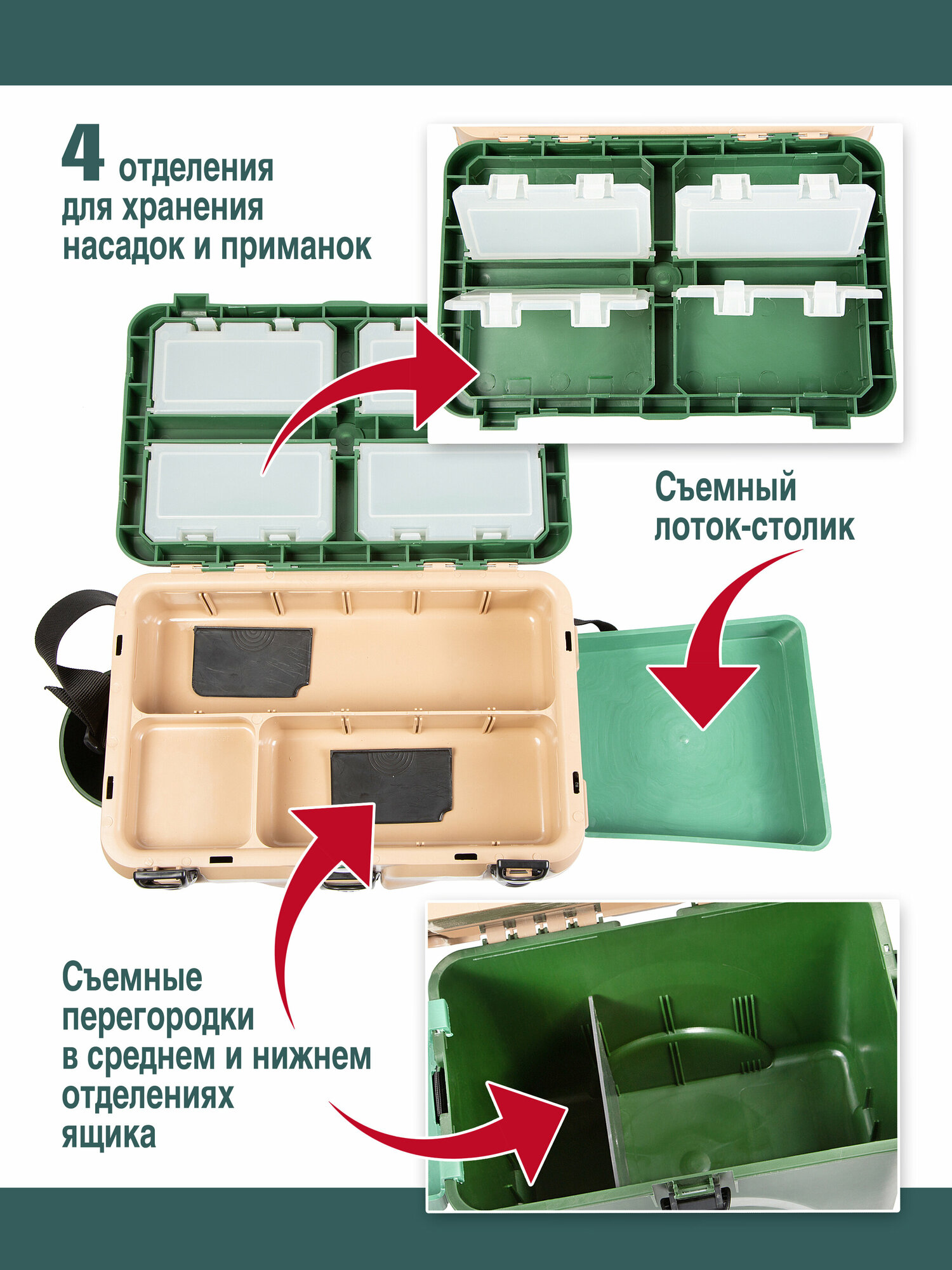 | Особенности | крышка-сиденье / лоток для снастей |