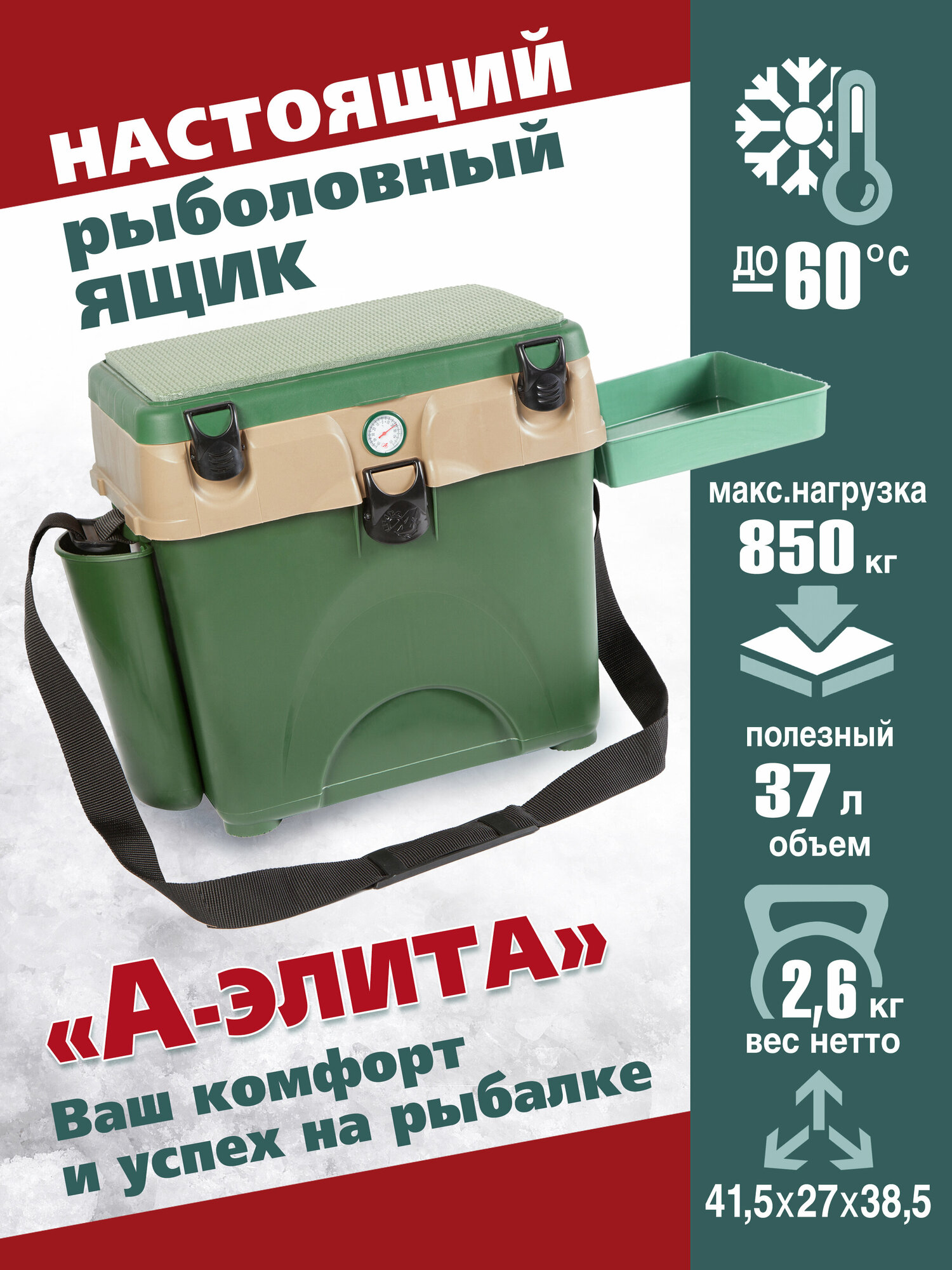 Ящик для зимней рыбалки с термометром, боковым карманом и столиком. Серия Комфорт A-elita A_Box