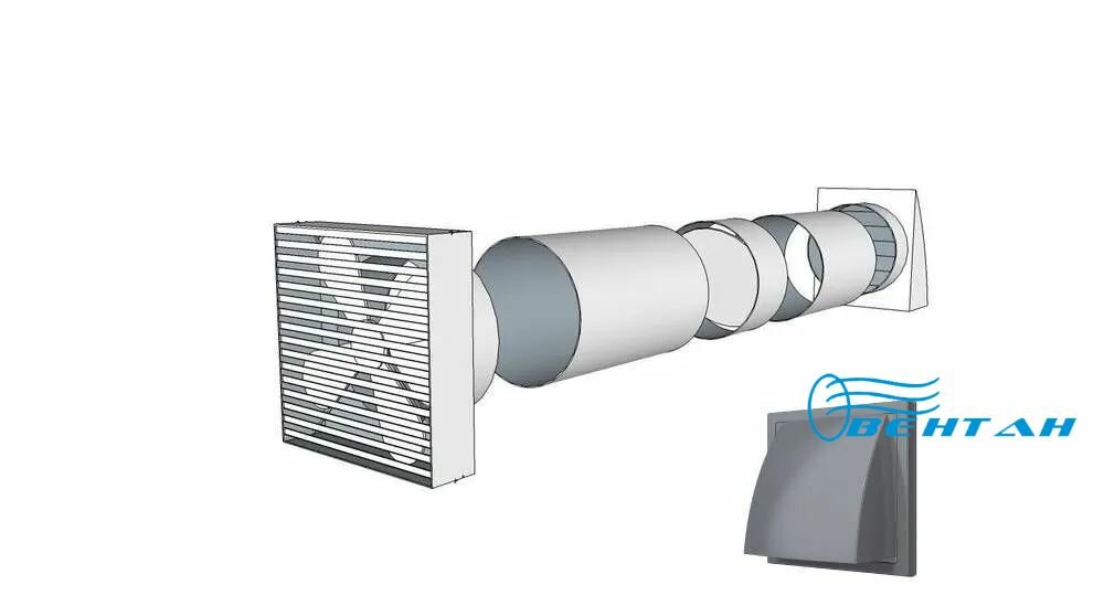 Вентиляция вытяжная диаметром 125 мм через стену до 0,5 метра (комплект) Вентан-125/0,5/СЕР информация:
