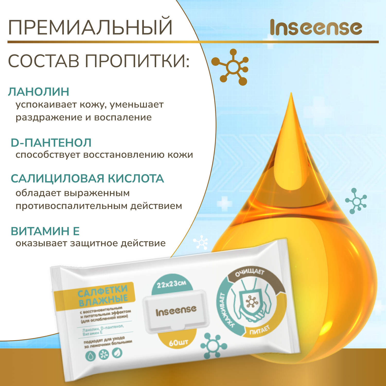 Влажные салфетки Inseense для ухода за лежачими больными, 60 шт информация:
