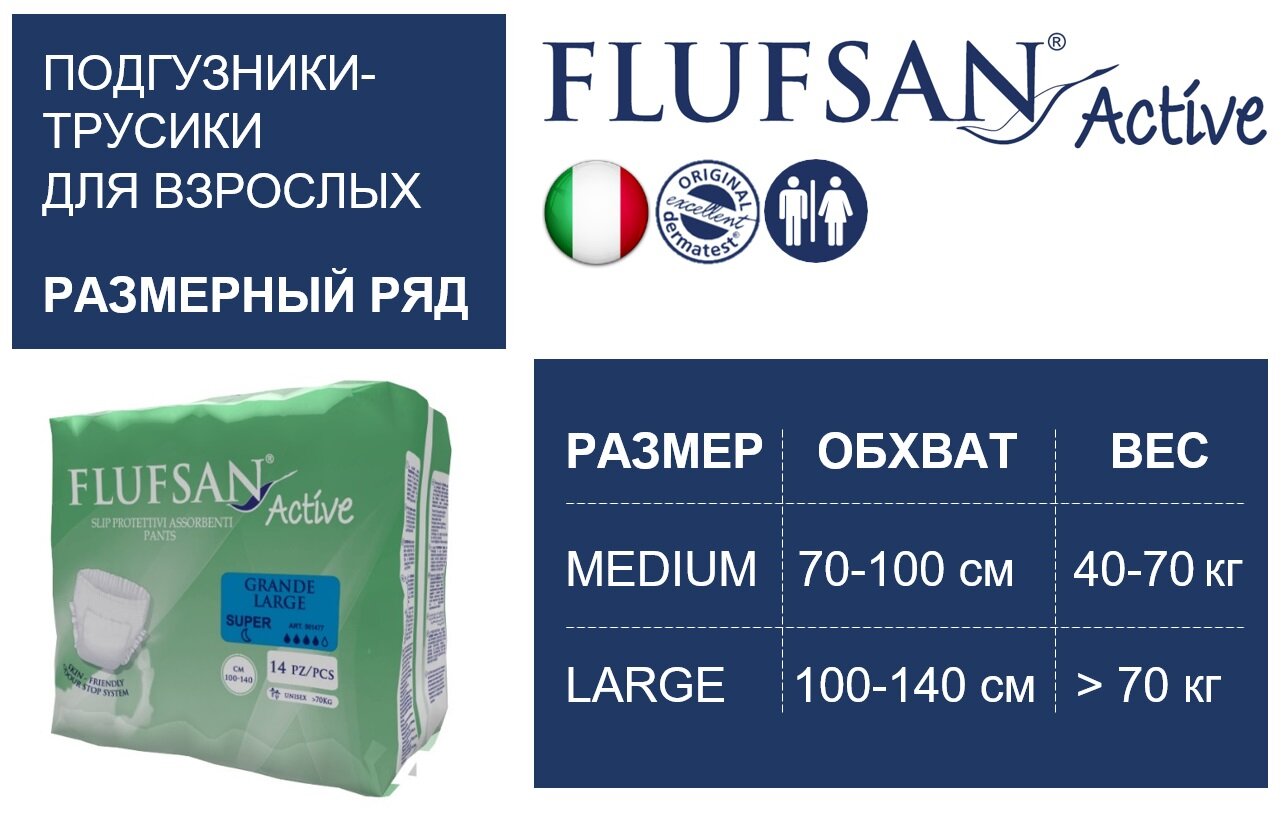 Flufsan Active Super Night / Флюфсан Актив Супер Найт - впитывающие трусы для взрослых, L, 14 шт. информация: