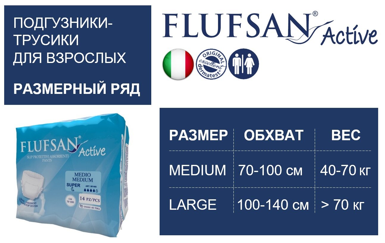 Flufsan Active Super Night / Флюфсан Актив Супер Найт - впитывающие трусы для взрослых, M, 14 шт. информация: