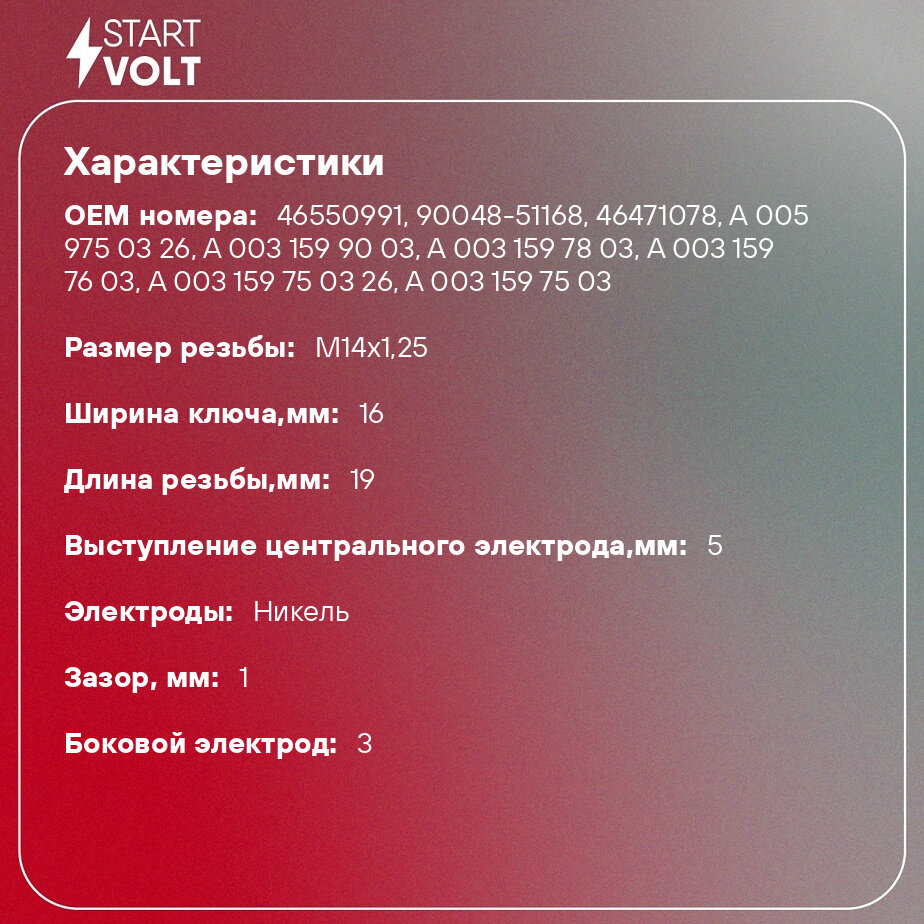 Свеча зажигания для автомобилей VAG Octavia A5 (04-)/Golf V (03-) 1.4i/1.6i VSP 1803 StartVolt информация:
