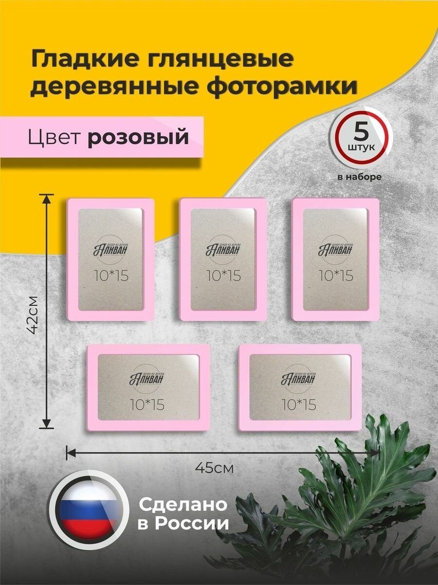 Набор рамок для фото 10х15 5шт. из дерева в розовом цвете информация: