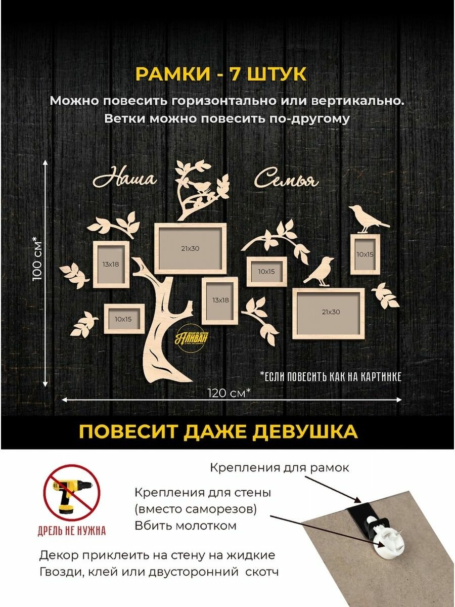 10 цен на Семейное дерево с фоторамками "Грачи" в натуральном цвете
